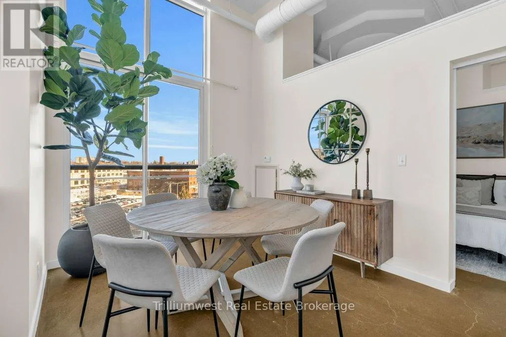 Cross Streets: Victoria & King. ** Directions: Victoria St S & King St. W. Discover urban living at its best in this bright and stylish 1-bedroom corner unit on the 5th floor of the highly sought-after Kaufman Lofts. This beautifully designed space has been freshly painted and features soaring ceilings, expansive windows, a juliette balcony and an open-concept layout that fills the home with natural light throughout the day. The modern kitchen flows seamlessly into the living area-perfect for relaxing or entertaining. The spacious bedroom offers comfort and privacy, while the 4 pc bathroom and in-suite laundry add everyday convenience. Enjoy the perks of downtown living in this historic conversion building with modern amenities, including a rooftop terrace, a dedicated parking space and a private locker for extra storage. Located in the heart of Kitchener's Innovation District, you're steps from the LRT, GO station, Google, shopping, restaurants, cafés, parks, and all that downtown has to offer. Whether you're a first-time buyer, investor, or downsizer, this bright corner loft has everything you need for modern city living. (id:27476)