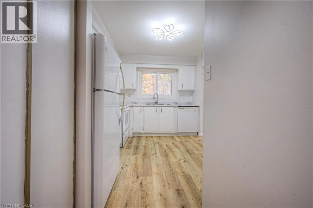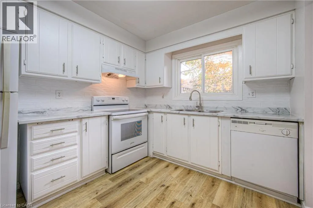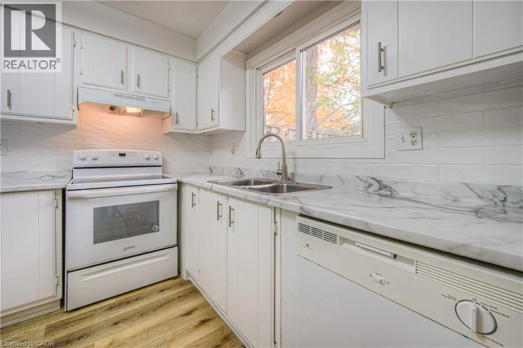 Homer Watson to Pioneer to Green Valley Attention Renters! Welcome to 9-206 Green Valley Drive! This is beautiful 3-bedroom 2-bathroom home is perfect for first time home buyers or investors! This freshly painted (2024) MOVE in READY home provides tons of living space, storage and a fully fenced backyard. As you enter the main floor you will be greeted by a spacious living room with a large window providing ample natural light. You will also find a good-sized dining room with direct access to the fully fenced backyard. The kitchen is bright and has lots of storage space with new countertops, sink, backsplash and faucet (2024). The main floor and basement have been beautifully upgraded with new LVP flooring (2024) throughout. On the upper level, you will find a large Primary Bedroom with a walk-in-closet and 2 very spacious bedrooms with oversized closets. The upper level has newer laminate flooring (2021) and a stunning newly renovated 4-piece bathroom (2024). The finished basement also has a newly renovated charming 2-piece bathroom (2024), a laundry room with extra storage space and a 4th bedroom! This home is also close to shopping plazas, schools, Conestoga College, 401 and so much more. Be sure to book your showing today! (id:27476)