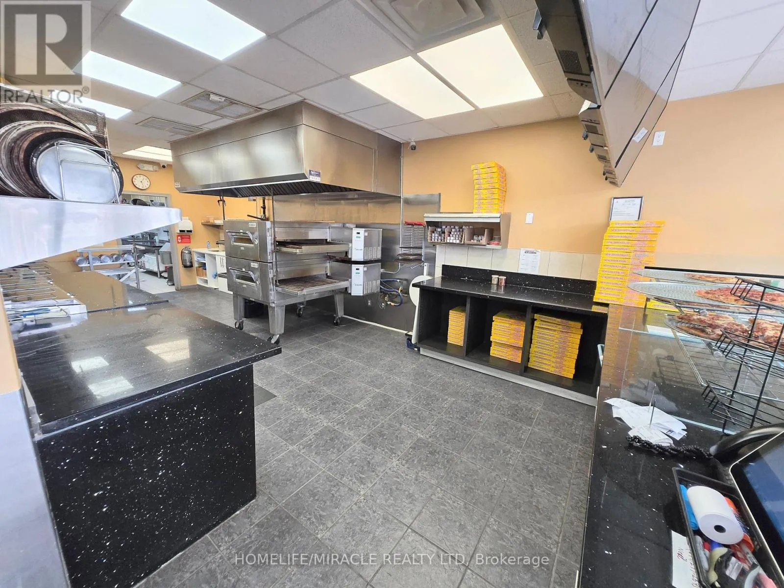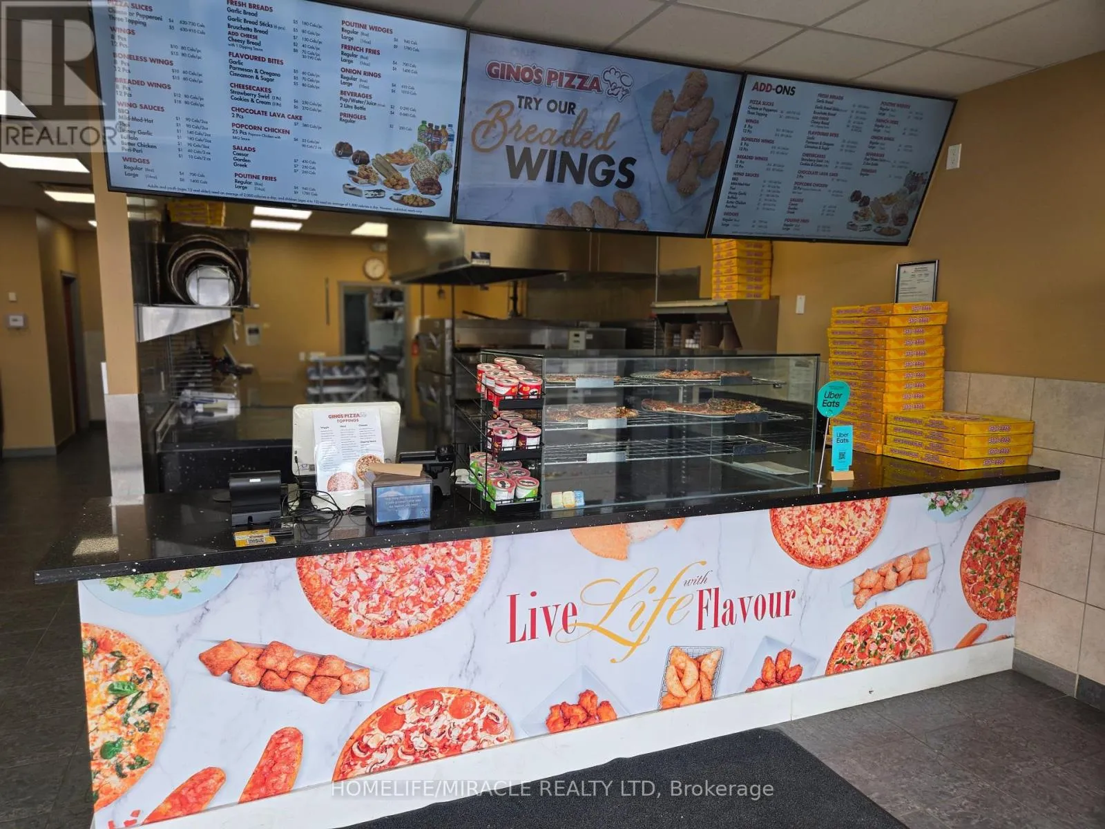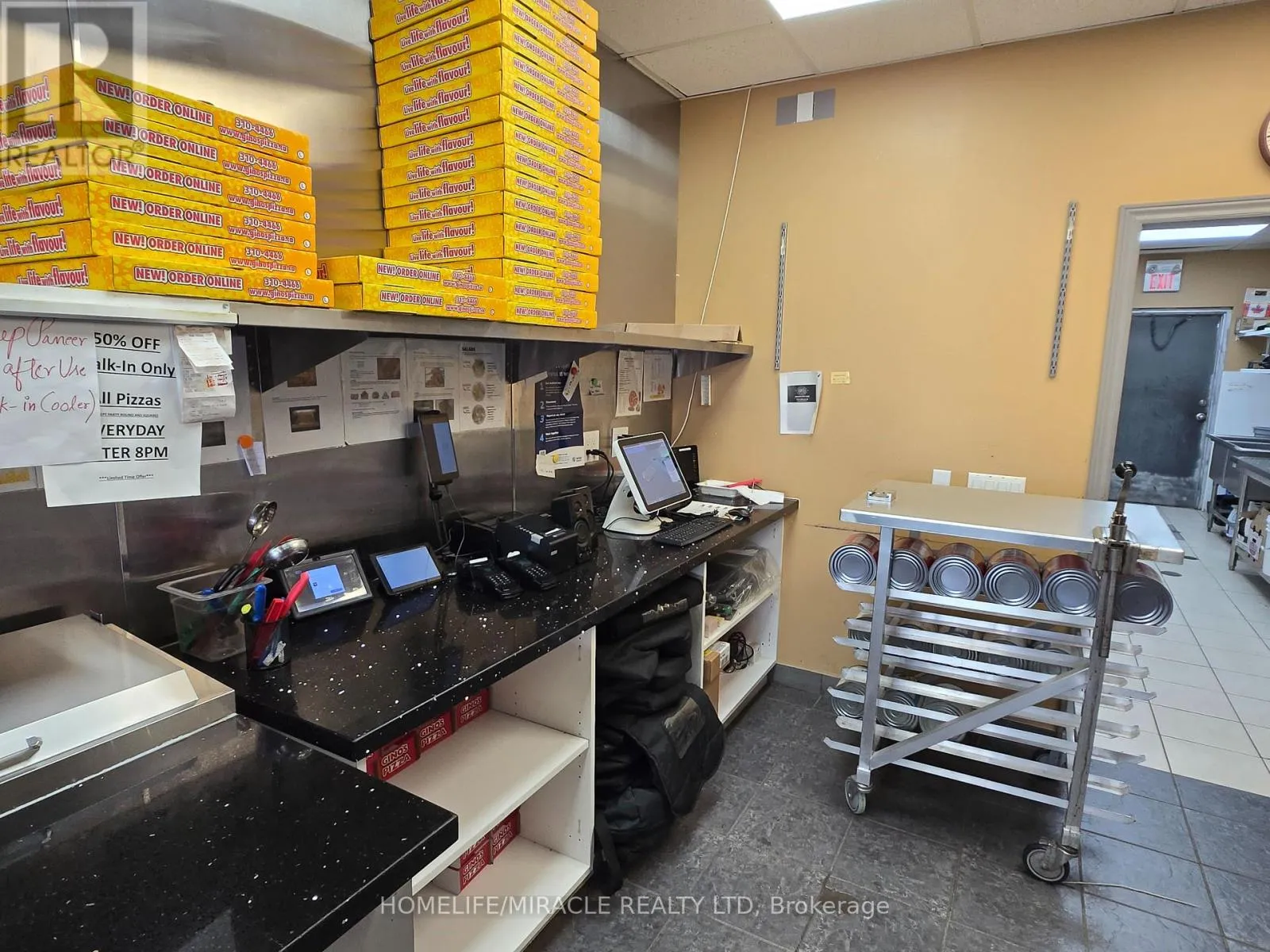 King St E/ Hwy 8 Franchised Gino's Pizza Store for Sale in Kitchener, ON Location: Busy intersection of King Street E Hwy 8 Prime Surroundings: New condo buildings, homes, various retail stores, and banks Visibility: High visibility with prominent signage and significant traffic flow Business Highlights: Lease: Existing 5-year lease with a 5-year renewal option Setup: Turnkey operation, fully equipped with a hood, pizza oven, walk-in cooler & freezer, large dough mixer, and more Operations: Takeout, sit-in, and delivery options available Parking: Ample surface parking directly in front of the unit Co-tenants: Strong co-tenants in the plaza Support: Formal training provided by the franchisor with ongoing dedicated support Opportunity: Be your own boss with this excellent business opportunity! (id:27476)