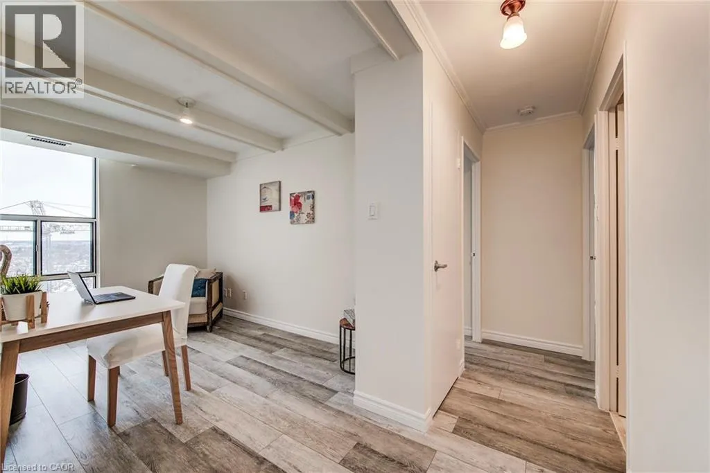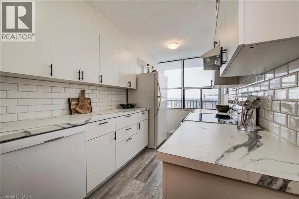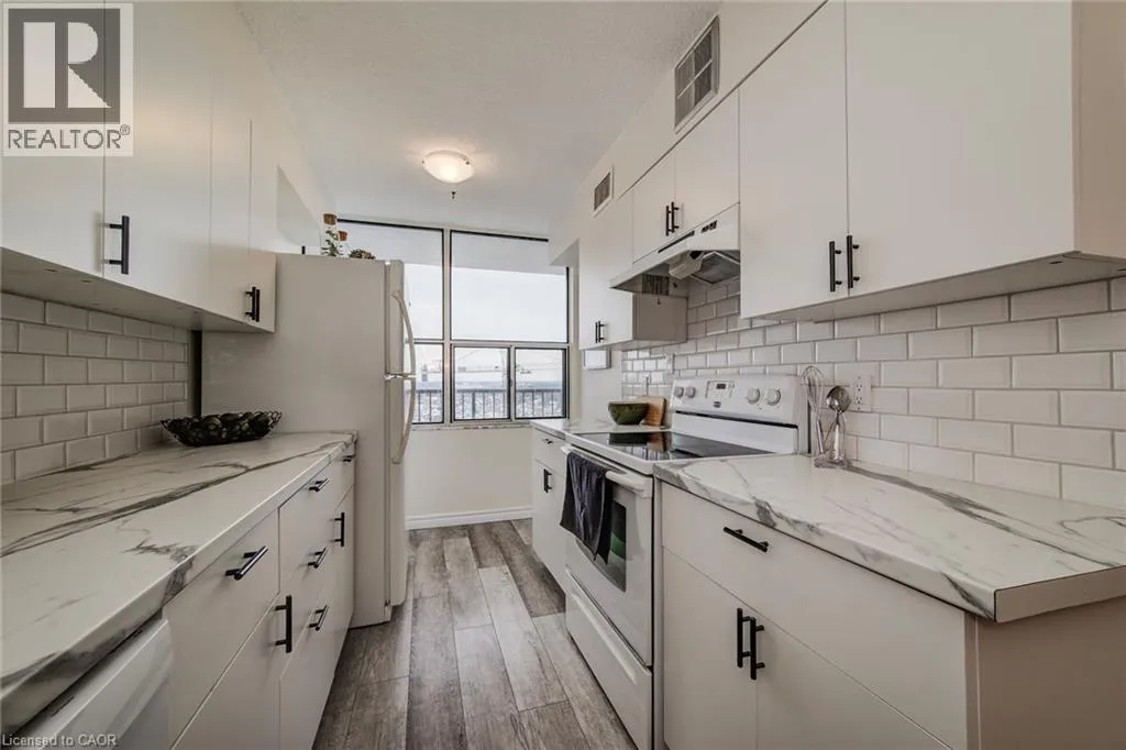 Benton to Church Welcome to 1504-81 Church Street, a beautifully renovated and freshly painted (2025) 2-bedroom, 1.5-bathroom condo offering 1,107 sq. ft. of stylish and functional living space in the heart of Kitchener. Perched on the 15th floor, this unit boasts breathtaking panoramic eastern views that simply can't be matched. Step inside to discover brand new vinyl plank flooring (2023) throughout and an updated kitchen featuring modern finishes and ample storage â perfect for cooking and entertaining alike. The spacious layout offers comfortable living and dining areas, generous bedroom sizes and updated bathrooms, including a convenient ensuite which is rare to find is this desired building. The den gives you the work form home space you need or a flexible space for guests to use. Enjoy the benefits of underground parking and a private storage locker, along with access to top-notch building amenities: an indoor pool, exercise room, sauna and party room. Whether you're relaxing at home or hosting guests this building has everything you need in an incredible central location. Ideally located just minutes from downtown Kitchener, public transit, shopping, and dining this condo is perfect for professionals, downsizers, or anyone looking to enjoy urban convenience in a quiet well-maintained building. With its premium location, thoughtful upgrades, and unbeatable views this is a home you donât want to miss! You simply cannot get this much square footage in this part of Kitchener at this price range anywhere else. Reach out and book a showing today. (id:27476)