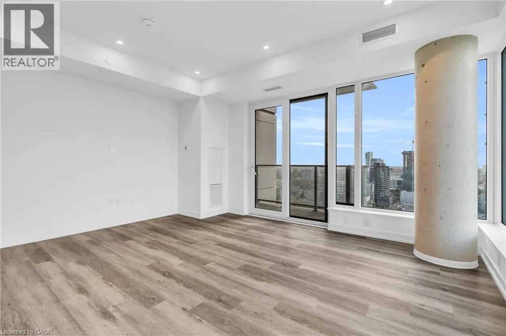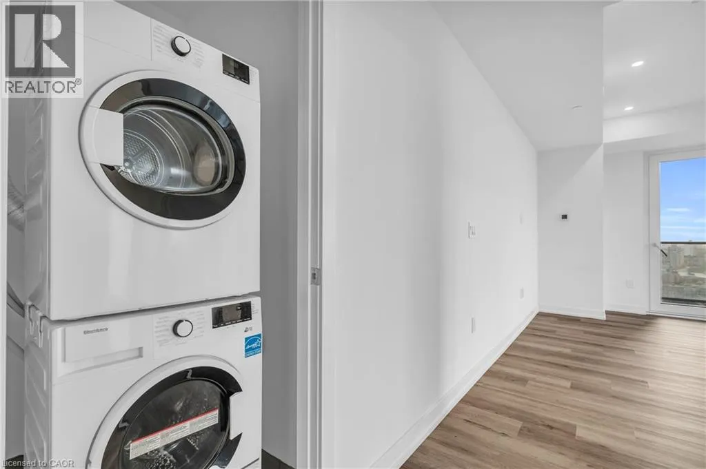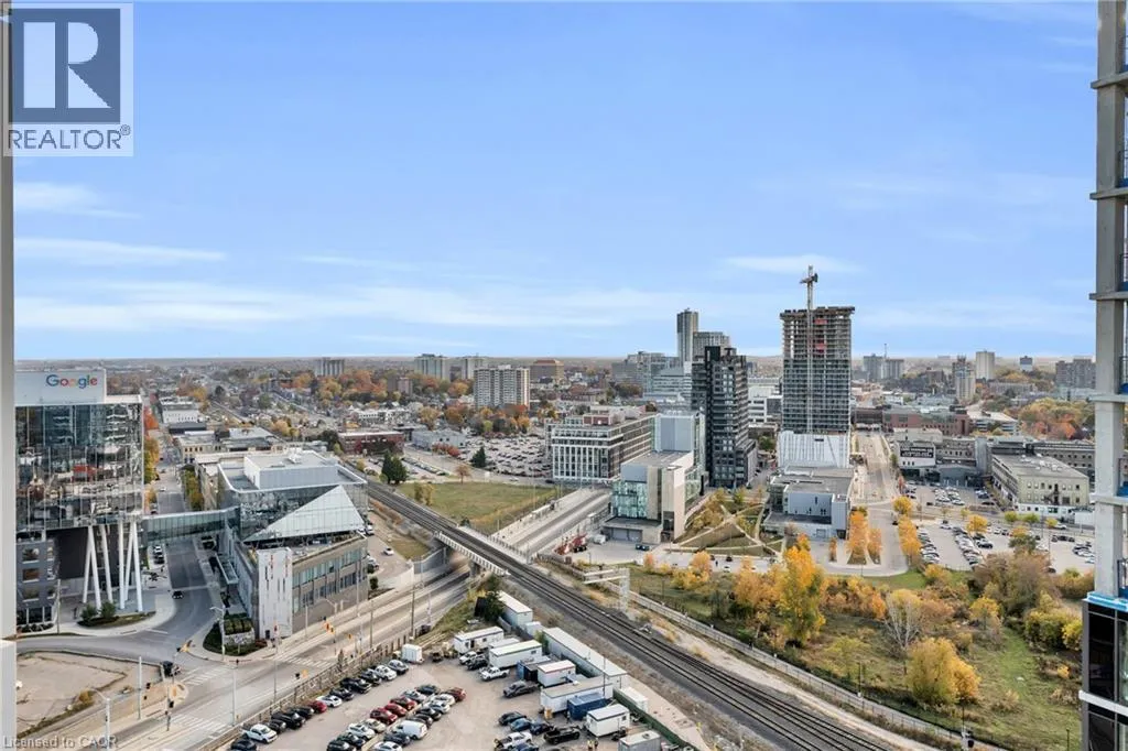 King St W to Wellington St S FIRST MONTH FREE* - Available Feb 1st 2026! Discover an exclusive luxury corner condo unit in the prestigious Station Park Condos of Kitchener. This sophisticated 1-bedroom, 1-bathroom urban sanctuary combines contemporary aesthetics with everyday convenience. Enter a space where style seamlessly blends with comfort, featuring an open-concept living area bathed in natural light from floor-to-ceiling windows, offering panoramic city views. This condo boasts $17,000 in upgrades, including an upgraded kitchen, upgraded bathroom, window coverings in the bedroom, an entertainment package, and more. STORAGE UNIT and Underground PARKING LICENSE included in Rent. Tenant to pay all utilities and internet. The gourmet kitchen is a culinary haven with state-of-the-art appliances, sleek countertops, and ample storage, making every meal a delightful experience. Retreat to the tranquil bedroom, complete with elegant touches, durable solid surface flooring, and plenty of closet space. The luxurious bathroom features high-end fixtures and a serene ambiance, perfect for unwinding after a busy day. Station Park offers unparalleled amenities, including a dedicated dog park, bowling alley, an amphitheatre, al fresco work stations, The Circuitâan innovative outdoor workout areaâand expansive open spaces for relaxation, blending outdoor living with urban essentials. Seize the opportunity to elevate your urban lifestyle at Station Park Condos. Enjoy opulence and sophistication, strategically located near entertainmen (id:27476)