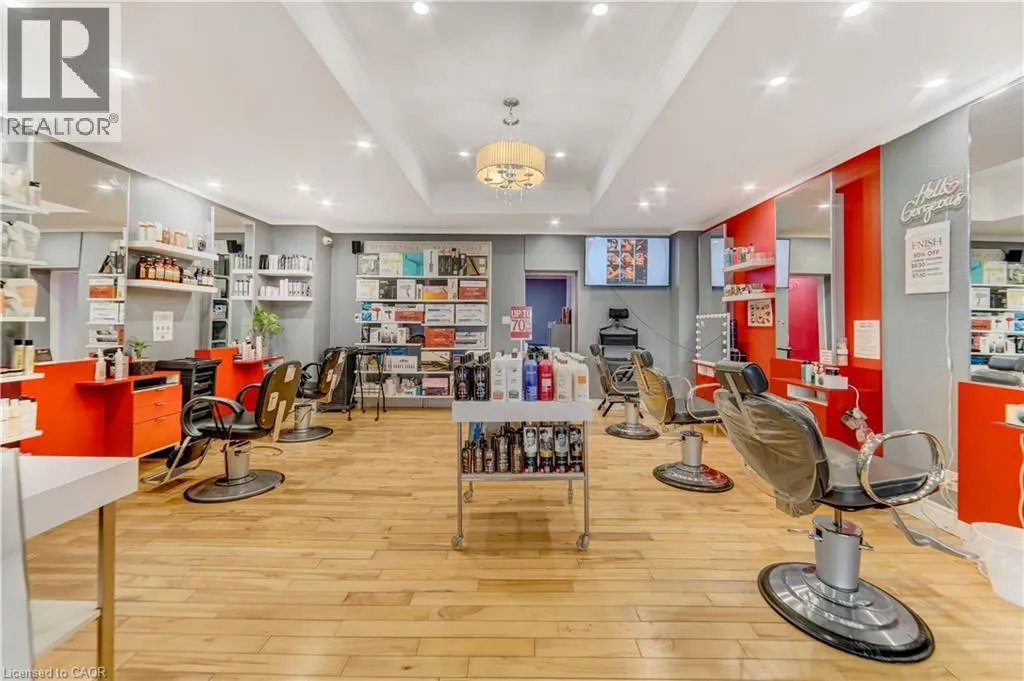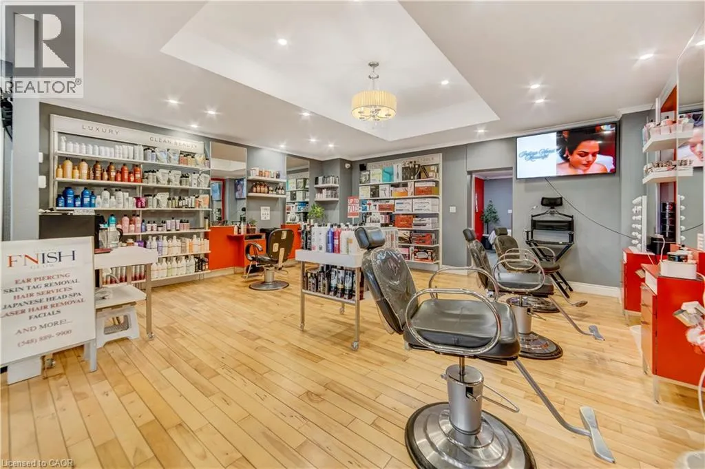 Corner of Mt Hope St and King St W Turnkey Beauty Salon & Spa Near Grand River Hospital â Fully Equipped and Move-In Ready This business opportunity includes all equipment, inventory, fixtures, digital assets, and branding. The salon comes fully set up with 7 salon chairs, 5 long wall mirrors, 3 laser machines, 2 treatment beds, Japanese head spa equipment, 3 wax pots, a towel warmer, washer & dryer, 4 tables and cabinets, 3 TVs, POS front desk system, alarm and security system with cameras and FOB entry, and 2 Sonos speakers. A perfect turnkey opportunity for anyone looking to start or expand a beauty, spa, or aesthetics business in a prime location near Grand River Hospital. (id:27476)