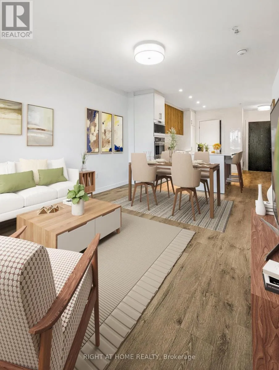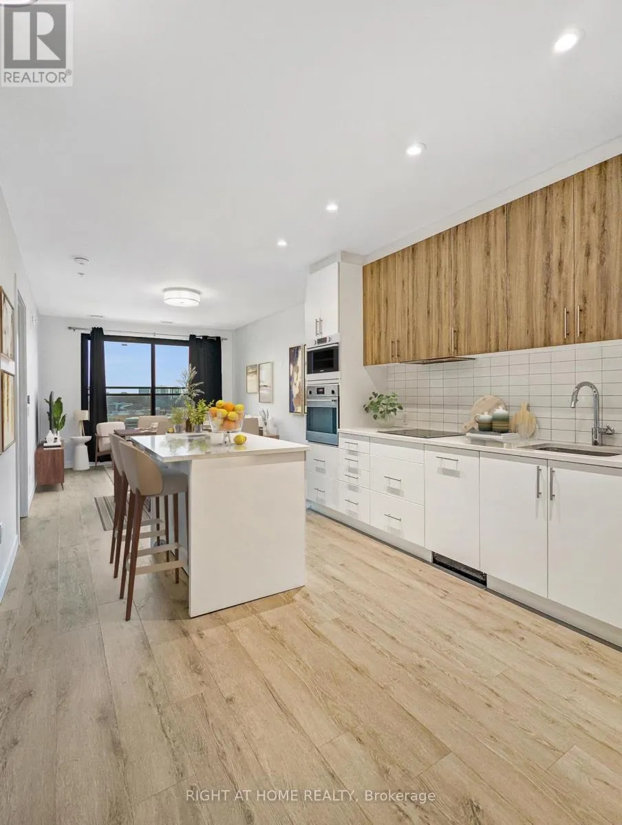 King & Wellington Welcome to this beautiful one bedroom and den over 700 sqft Branstone model in the sought after Circa 1877 building in the Bauer District of Uptown Waterloo. The open concept kitchen/living room with Centre island offers an inviting space to relax or entertain overlooking the city. Large bedroom with sleek custom closet, large den can be used as an office & 4 pc semi ensuite-bathroom. High modern finishes throughout the unit including built-in appliances such as wall oven, cooktop, fridge and quartz countertops and subway tile backsplash. Amazing building amenities incl smartphone entry, fitness room, guest suites, indoor/outdoor yoga, lounge with wet bar, sky terrace on the 6th floor with salt water pool and cabana's. Walking distance to boutique shops, vibrant restaurants, Vincenzo's, entertainment and the LRT. (id:27476)