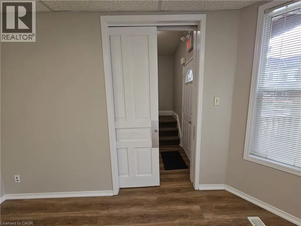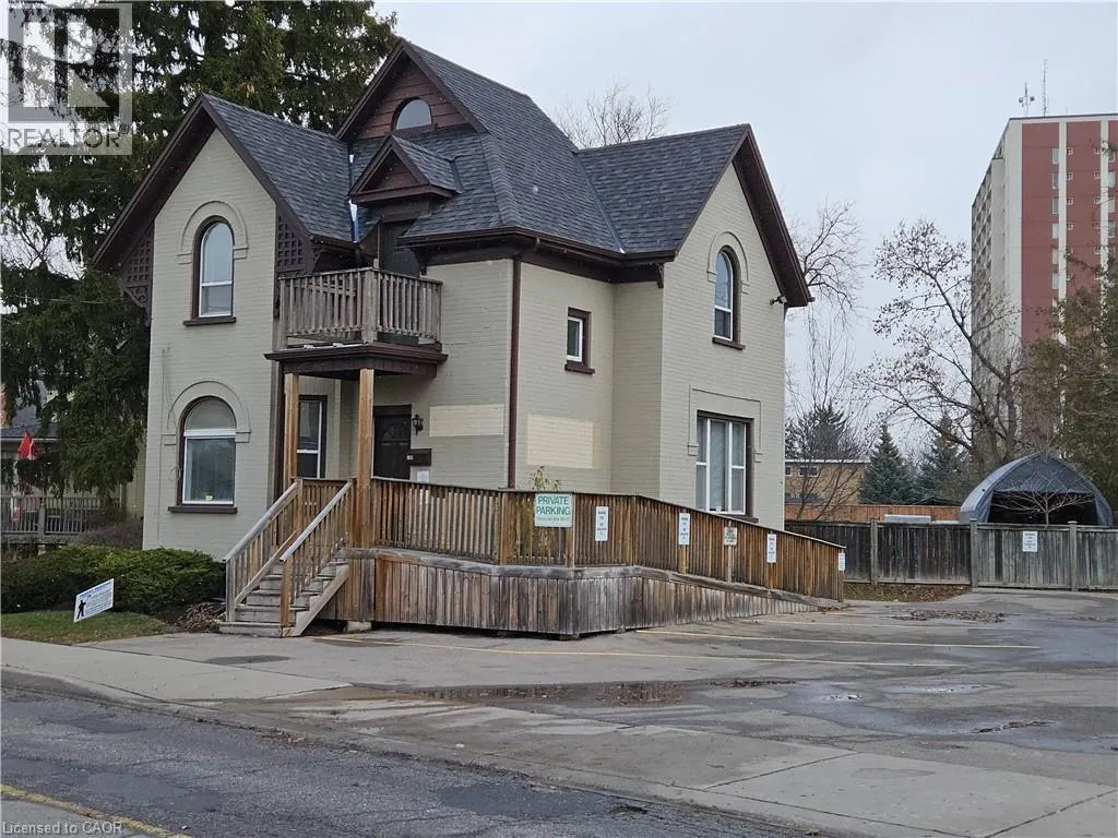 near the corner of Lancaster and Frederick St Kitchener Discover a move-in-ready commercial office building in a highly visible downtown Kitchener location, just steps from the corner of Lancaster and Frederick Streets. Freshly painted throughout, this bright and welcoming space features large windows, modern laminate flooring, and six private offices suitable for a variety of professional uses. The main floor offers a spacious reception area, two offices, an accessible washroom, and a convenient kitchenette equipped with a fridge, new cabinetry, and a sinkâideal for staff use. The second floor provides three more offices along with a second washroom. Clients and staff will appreciate the dedicated six on-site parking spaces and a wheelchair-accessible ramp leading to the main entrance. The lower level provides one more office and an unfinished storage area to give you additional flexibility for business operations. Positioned in a central, well-connected area with excellent exposure and easy transit access, this standalone building offers the comfort of private offices and the convenience of downtown amenities. Ideal for professional, administrative, or service-based businesses seeking a functional and welcoming space in a prime Kitchener location. (id:27476)
