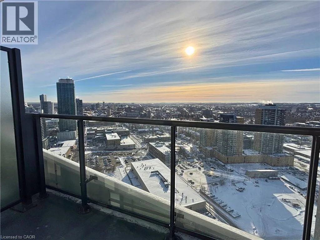King St W to Wellington St S Welcome to Station Park, where luxury living meets unbeatable convenience. Perched on the 29th floor, this bright and beautifully upgraded unit offers stunning views and a modern finish package that stands out. The kitchen features soft-close cabinetry, quartz countertops, a peninsula with dining overhang, upgraded pot lights, and stainless-steel appliances. Throughout the unit, youâll find waterproof, scratch-resistant luxury vinyl flooring and upgraded trim for a clean, modern feel. The bedroom includes a walk-in closet and ensuite access to the 4-piece bath, which features a large, tiled shower/tub combo. With in-suite laundry and a bright open-concept living space, the suite is both stylish and functional. Rent includes internet, A/C, and heat; tenants pay hydro and water. Residents enjoy outstanding amenities: a sauna, outdoor gym, half running track, plus full access to Station Parkâs fitness and Peloton studio, bowling lanes, lounge and bar, music room, and hydro-pool swim spa. With new restaurants, shops, and outdoor spaces continuing to open, this community keeps getting betterâ and youâre steps from Google, the UW School of Pharmacy, LRT stops, and downtown Kitchener. (id:27476)