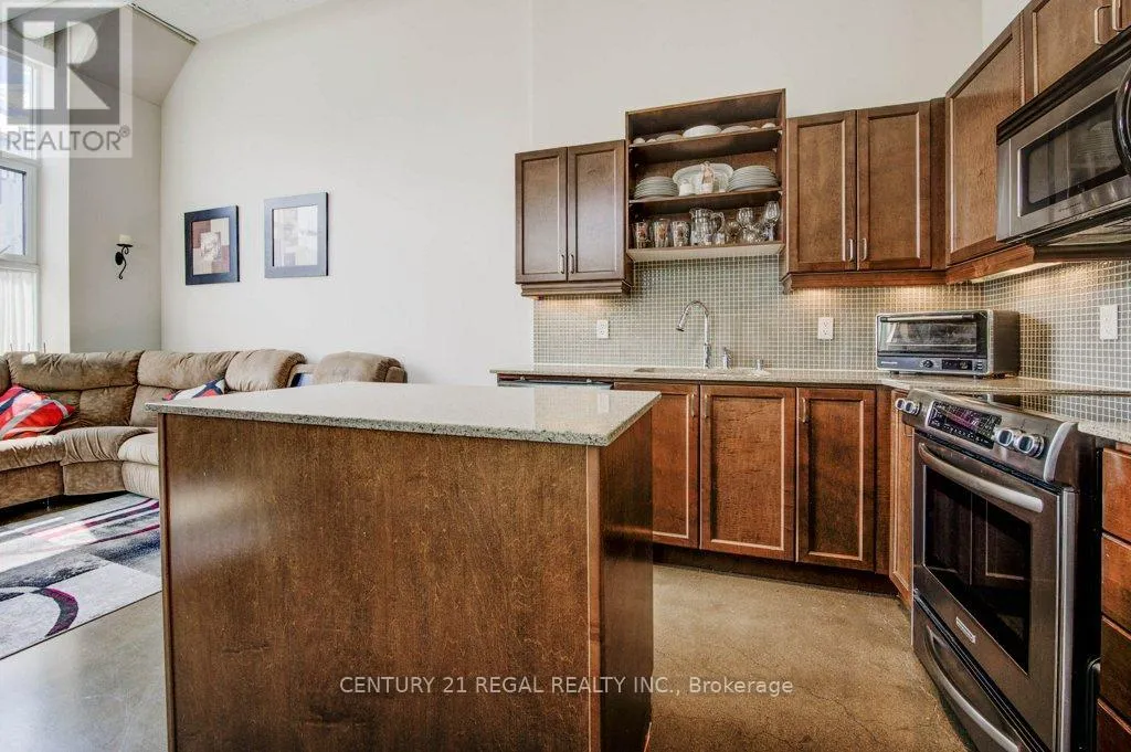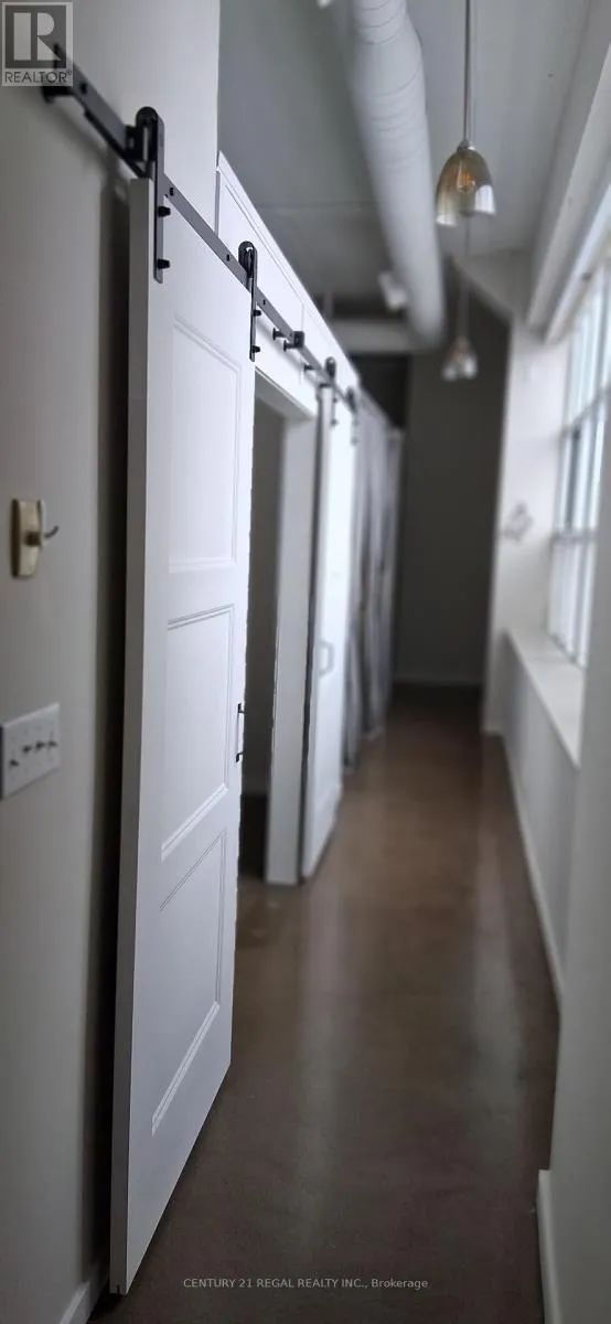King St W & Victoria St N Welcome to Kaufman Lofts! This stunning corner unit delivers true loft living with 2 bedrooms, polished concrete floors, soaring 13-ft ceilings, massive windows, and authentic industrial vibes throughout. Wrap-around windows and a Juliette balcony flood the space with natural light, while electronic privacy blinds on every window (over $10K value) add instant convenience. The open-concept living and dining space is perfect for entertaining, and the modern kitchen checks every box with shaker-style wood cabinets, quartz countertops, a glass backsplash, stainless steel appliances, double undermount sink, and a centre island with plenty of storage. Both bedrooms are generously sized, with the primary bedroom featuring brand-new sliding barn doors that add style and function. You'll also find a 4-piece bathroom, ensuite laundry, plus 1 parking spot and 1 locker. Set in the iconic former Kaufman Footwear Factory, this authentic loft sits right in the heart of Kitchener's Innovation District - steps to Google HQ, McMaster Campus, Conestoga College, UW School of Pharmacy, GO & VIA Transit, the LRT, and some of the city's best restaurants, cafés, shops, and nightlife. Priced to sell and offering incredible value - this is your chance to snag a true loft at an amazing price. Great unit! Great building! Unreal location! Don't miss it! **Extras: Rooftop terrace with BBQs, party room, bike storage. Maintenance fees include high-speed internet, heat, A/C, water, and parking. (id:27476)