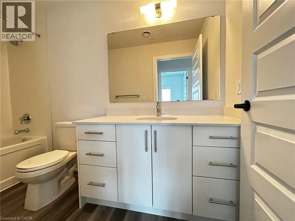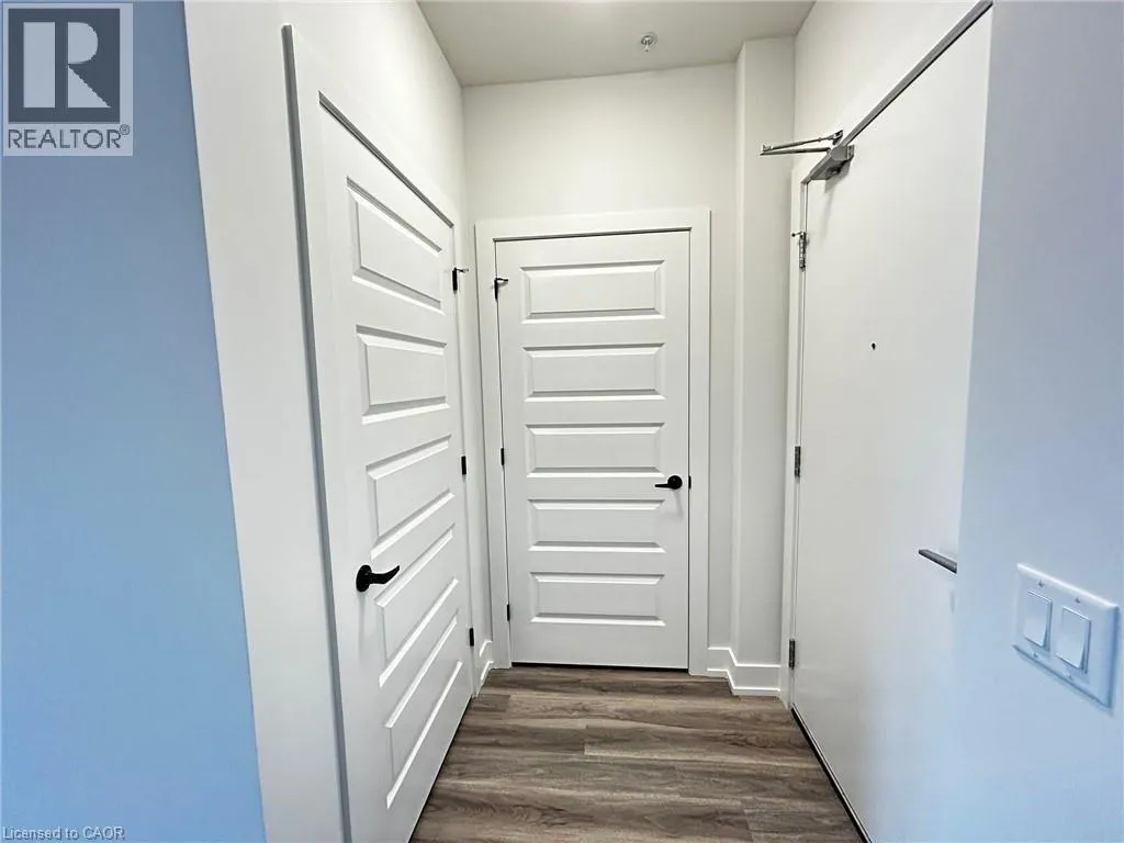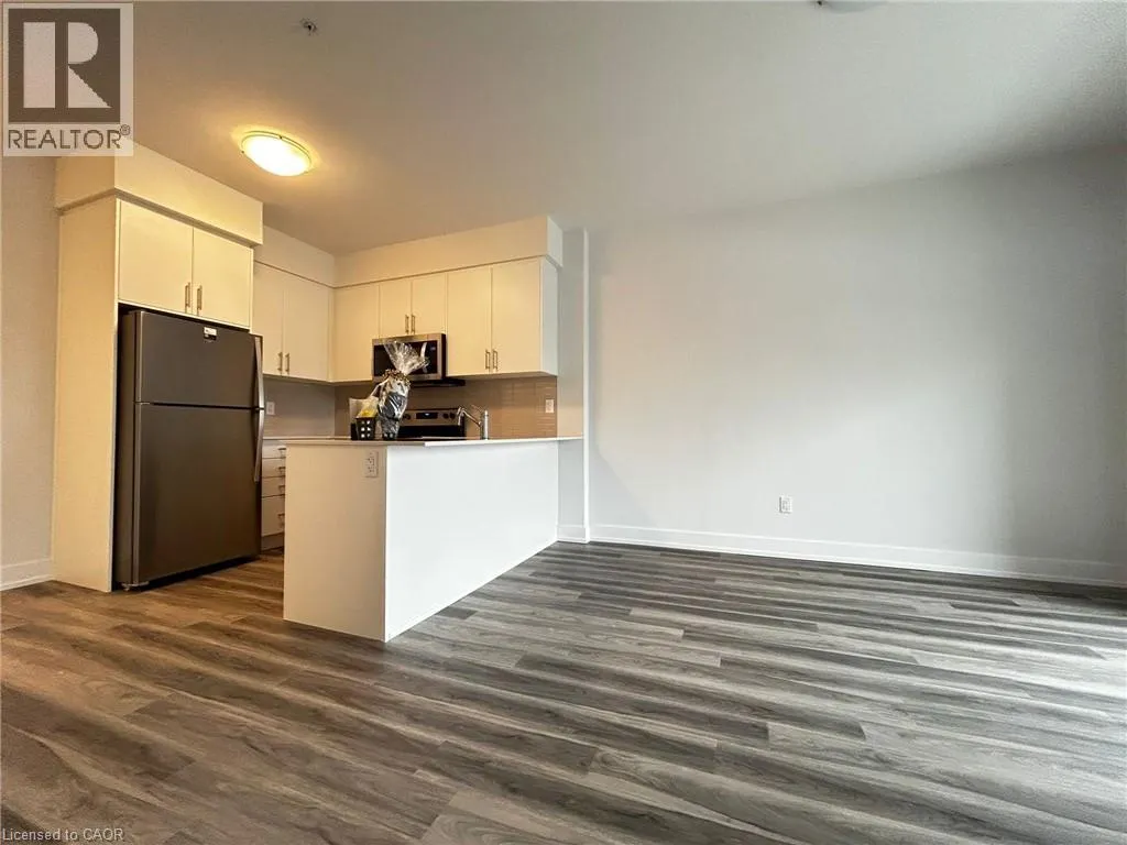 Ottawa st N To Lackner Blvd Welcome to 1100 Lackner unit 421: A brand-new, airy 1-bedroom, 1-bathroom condo located in the highly desirable Lackner Ridge community of Kitchener. Thoughtfully designed and move-in ready, this stylish unit offers a spacious open-concept layout featuring 9-foot ceilings, abundant natural light, and elegant laminate flooring throughout. The contemporary kitchen is equipped with quartz countertops and stainless steel appliances, ideal for both daily living and entertaining. The inviting living and dining area walks out to a large private balcony overlooking a serene, tree-lined walking trail, perfect for relaxing outdoors. The private primary bedroom includes a generous closet and access to a full bathroom. Added convenience includes in-suite, full-size laundry located in a dedicated laundry room. This unit comes with one surface parking space and a secure locker on the third floor for extra storage. Residents can enjoy comfort-style amenities in a welcoming building, including a gracious lobby, luxurious lounge, elegant party room, visitor parking, and shared sitting areas. Ideally situated just minutes from major shopping destinations such as Walmart, Costco, Canadian Tire, and Real Canadian Superstore, and within walking distance to Food Basics, Rexall, and Dollarama. Easy access to Highways 7, 8, and 401, public transit, nearby bus routes, the GO Station, and close proximity to Wilfrid Laurier University, University of Waterloo, and Conestoga College make this location exceptionally convenient. This condo offers excellent opportunity for professionals or couples seeking quality living in a prime location. Book your showing today! (id:27476)