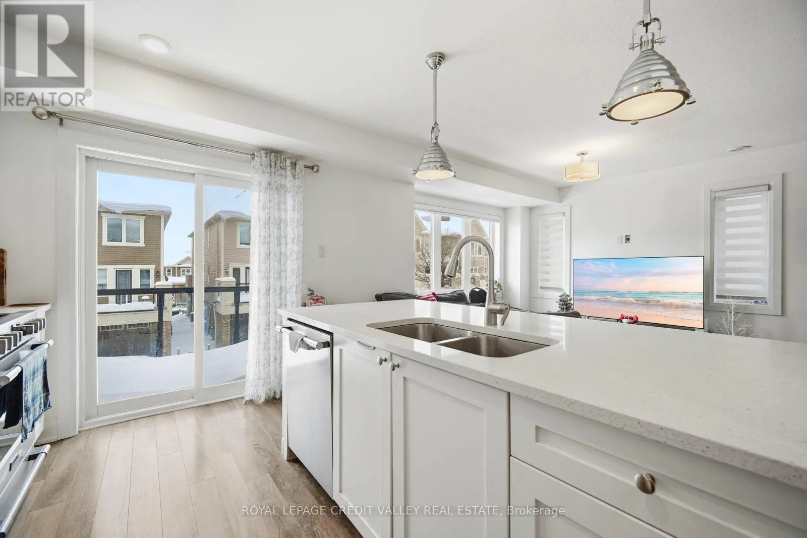 Fischer-Hallman Rd and Huron Rd Beautiful END UNIT townhome in the highly sought-after Huron Park community, offering extra windows and abundant natural light throughout. Features a ground-floor office, convenient garage entry, and parking for two vehicles (one garage & one driveway).The bright and spacious second floor showcases laminate flooring throughout and a walk-out to a large balcony, perfect for relaxing or entertaining. The modern kitchen is equipped with granite countertops and stainless steel appliances.Upstairs, you'll find two generously sized bedrooms, each with a private ensuite and custom closet organizers, along with the convenience of upper-floor laundry featuring a new LG washer and dryer (2024). An additional powder room is located on the main floor for guests.Additional upgrades include a new water softener (2023). Ideally located close to Highway 401, shopping, schools, and everyday amenities-this home is move-in ready and perfect for professionals or families alike. (id:27476)