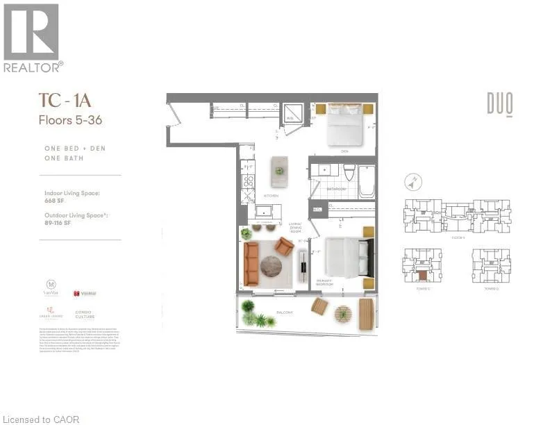 King & Wellington St S - across from Google Brand new from VanMar Developments! Spacious 1 bed + den suite at DUO Tower C, Station Park. 668 sf interior + oversized balcony (89-116sf). Open living/dining with modern kitchen featuring quartz counters & stainless steel appliances. Primary bedroom features walk out access to a large double sized balcony. Den offers ideal work-from-home flexibility and is large enough to be utilized as a room in itself. In-suite laundry. Enjoy Station Parks premium amenities: peloton studio, bowling, aqua spa & hot tub, fitness, SkyDeck outdoor gym & yoga deck, sauna & much more. Steps to transit, Google & Innovation District. (id:27476)