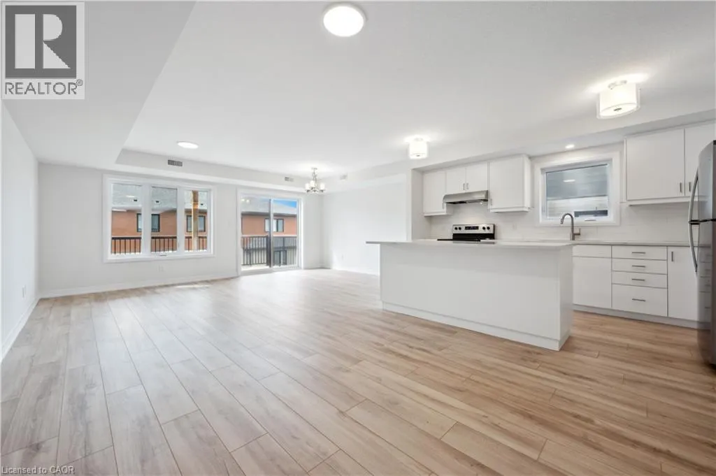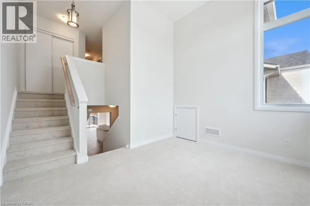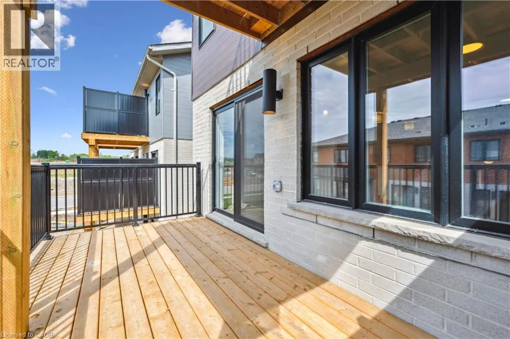 Access Stauffer Woods Tr from Blair Creek Dr or New Dundee Rd Brand new, ready now, and available for a quick closing, this gorgeous 3 bedroom, 2.5 bath condo townhouse is located in sought-after Harvest Park in Doon South. The kitchen is sure to impress with plenty of cabinetry, a large island, quartz countertops, and stainless appliances. The great room is of very generous proportions and sliders from the dining area lead to a spacious deck. On the way to the upper level, you'll love the bonus lounge that is the perfect spot for a family room or home office. Upstairs are 3 bedrooms plus a laundry room. The primary suite features a second, private balcony , a 3 piece bath and lots of closet space. A main 4 piece bath completes this level. One surface parking space. Condo fees include building and grounds maintenance as well as High Speed Internet. This is an excellent location - near Hwy 401 access, Conestoga College and beautiful walking trails. SALES CENTRE LOCATED at 158 Shaded Cr Dr in Kitchener - open Monday to Wednesday, 4-7 pm and Saturday, Sunday 1-5 pm . (id:27476)