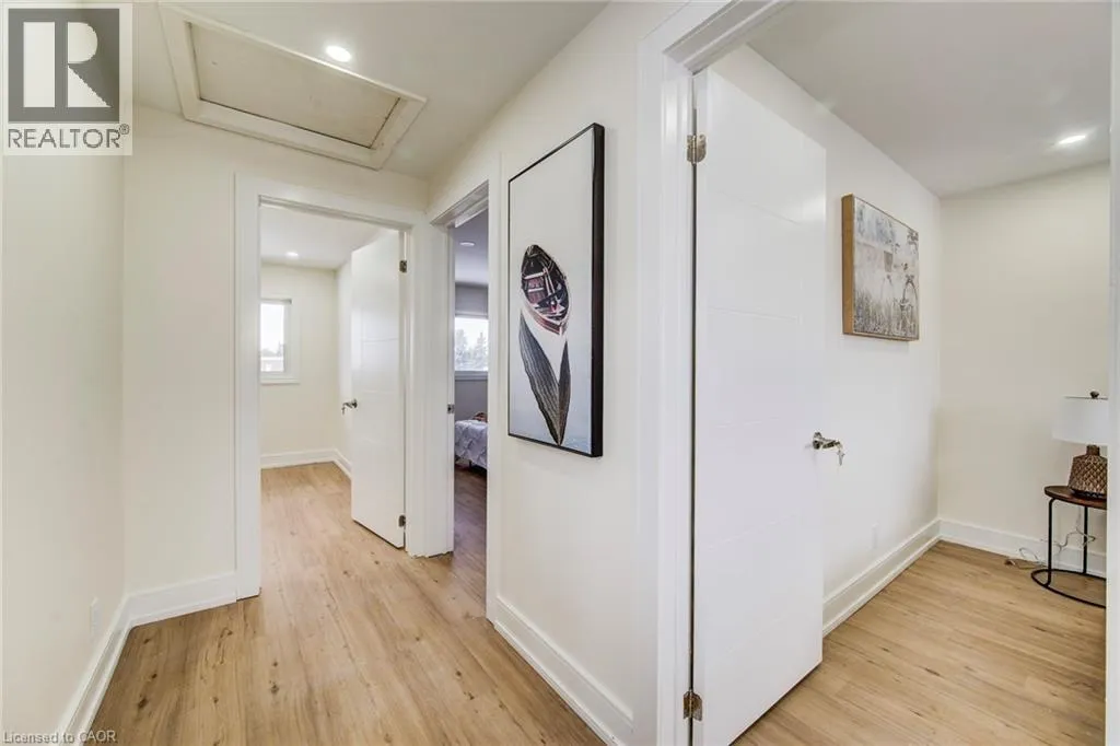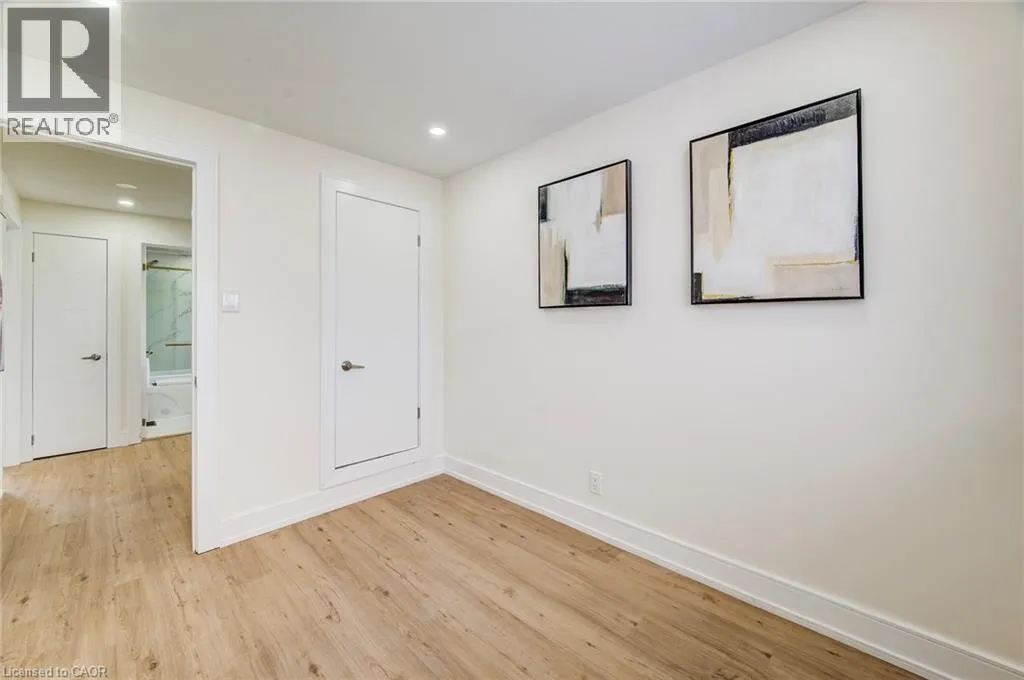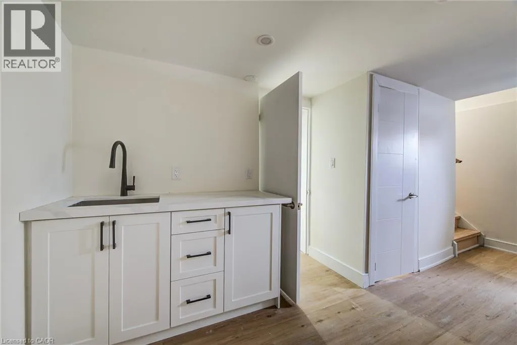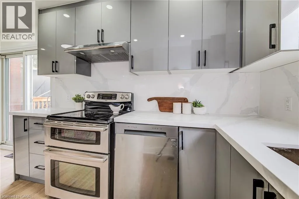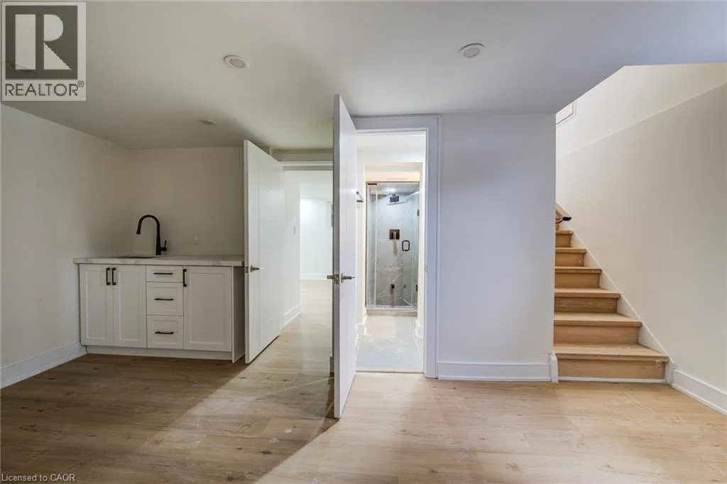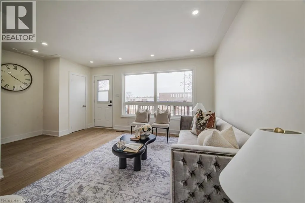 River Rd E to Hickson Drive to Secord Ave This extensively renovated, carpet-free semi-detached home features over $150,000 invested in quality upgrades and offers 3+1 bedrooms and 2.5 bathrooms, including a fully finished basement with a side entrance. The comprehensive upgrades include a new furnace, new air conditioner, upgraded electrical panel, modern interior doors, updated baseboards and trim, new flooring throughout, fresh paint, pot lights throughout the home, extended kitchen countertops for added storage, a dedicated pantry, a wet bar, a modern designed washroom with glass shower doors, and nearly new appliances, along with black soffits, eavestroughs, and rain downpipes enhancing the exterior appeal. The bright basement is enhanced by large windows in both the living area and bedroom, allowing for excellent natural light, and includes a stackable laundry setup. Situated on a deep 150-ft fully fenced lot, the property also features newly built decks at both the front and back, ideal for outdoor enjoyment. The home offers parking for up to 4 vehicles. Ideally located directly across from Stanley Park Senior Public School, within walking distance to Stanley Park Mall, Canadian Tire, Zehrs, the Stanley Park Community Centre, and transit, and just minutes to shopping centres, local businesses, the GO Station, and major highways, this move-in-ready home offers exceptional comfort, modern style, and everyday convenience. (id:27476)