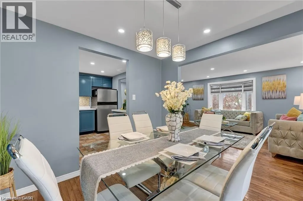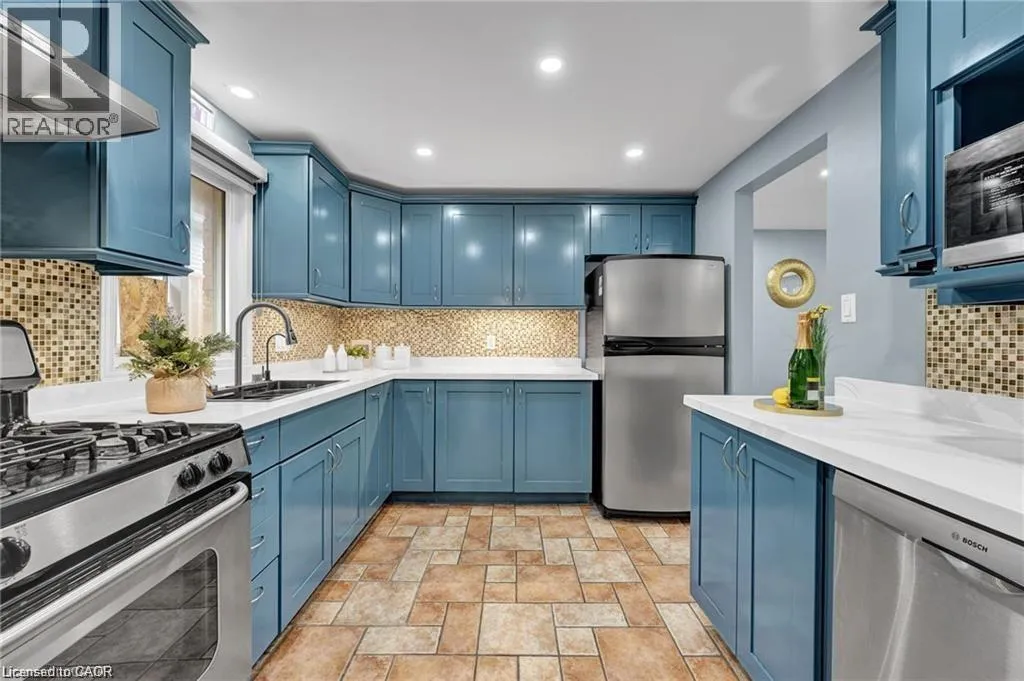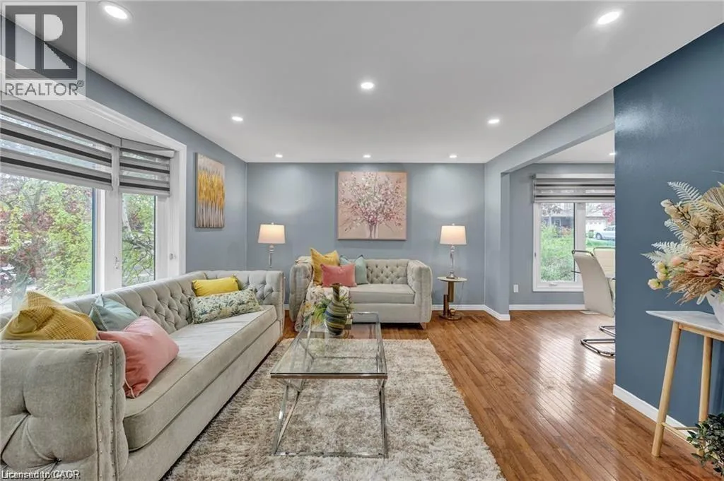 Doon Village Rd/Bechtel Dr Welcome to this beautifully maintained detached raised bungalow located in the highly sought-after Doon Village area of Kitchener! Nestled on a premium corner lot, this move-in-ready home combines comfort, space, and exciting future potential - perfect for families, downsizers, or investors. Step inside to a bright, carpet-free main floor featuring an updated kitchen with quartz countertops, a spacious living and dining area, and three generous bedrooms. The fully finished basement offers a large recreation room, den, full bathroom, and a bonus room - ideal for a home office, guest suite, or potential in-law setup. A separate entrance through the garage provides flexibility for extended family living or future rental income opportunities. Enjoy outdoor living in your private, fenced backyard complete with a spacious deck - perfect for entertaining, relaxing, or letting kids and pets play freely. The home also features a rainwater harvesting system with two underground 2000-litre tanks, a motorized pump (installed in 2017), and a sprinkler system, making lawn and garden care effortless and eco-friendly. Additional highlights include a single-car garage, wide driveway for ample parking, and a prime location close to Highway 401, Conestoga College, Fairview Park Mall, public transit, schools, and scenic trails. Don't miss this rare opportunity in one of Kitchener's most convenient and family-friendly neighborhoods (id:27476)