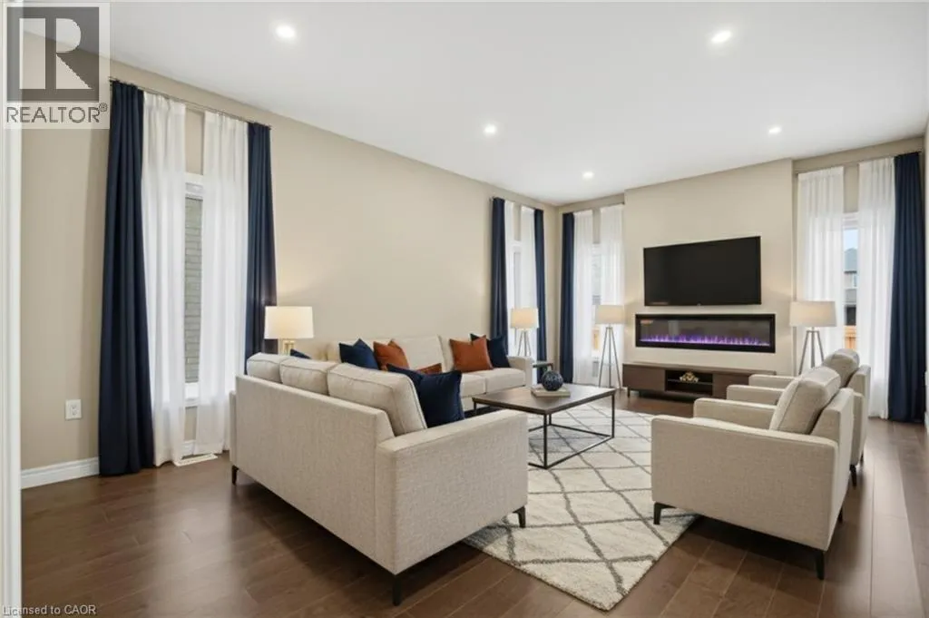 Spachman street To Tartan Ave Welcome to 126 Tartan Avenue: an exceptional luxury home offered at an outstanding value. Built by the highly regarded Fusion Homes, this just a few years newer residence situated on a generous 36 x 102 ft lot offers 4 car parking: 2 car garage, 2 Car Driveway. Step inside to a welcoming foyer that impresses with hardwood flooring throughout the main level, matching natural oak stairs. The main floor features 9-foot California ceilings, enhancing the sense of openness and elegance. Beautifully designed kitchen equipped with stainless steel appliances, gorgeous white ceramic brick-style backsplash, quality quartz countertops and extended soft-close cabinetry. The modern living area is bright and inviting, highlighted by a stylish electric fireplace and a wall of large windows that flood the space with natural light, creating an airy and sophisticated atmosphere. Upstairs, youâll find 4 spacious bedrooms, including 2 luxurious primary suites, each with its own private ensuite bathroom, a highly desirable feature. Primary bedroom boasts a large walk-in closet, while all additional bedrooms are generously sized with ample closet space. A third full bathroom on the upper level adds exceptional comfort. The basement offers excellent ceiling height With rough-ins already in place for a future bathroom and egress windows, the lower level is ready for your personal vision, whether itâs a recreation area, home gym, or additional living space. Outside, the partially fenced backyard requires fencing on just one side to be fully enclosed, providing privacy and a perfect setting for kids to play, family gatherings, or outdoor entertaining. Ideally located in a vibrant, family-oriented neighbourhood, this home is steps from Scotâs Pine Park, RBJ Schlegel Park, Top Rated Schools, with walking distance to plazas and quick access to Highway 401, 7/8. A rare opportunity to own a luxury home in an unbeatable location at a fantastic price. Book your private showing today! (id:27476)