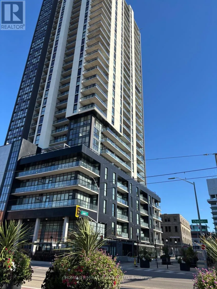 Charles St W/Queen St S THE BEST DEAL IN THE CITY. Welcome to Unit 1001, on the 10th floor of 60 Charles Street West, right in the heart of Kitchener's vibrant core. You're steps away from Victoria Park, trendy cafes, shops, and everything that makes this city hum with energy. This 1-bedroom + spacious Den, 1-bathroom condo pulls you in with its modern vibe, think LVP flooring, sky-high 10' ceilings, and floor-to-ceiling windows that flood the space with light. It's the kind of place that feels open, airy, and just begs you to kick back and soak it all in.You'll love the little details that make life easy. In-suite laundry, Low condo fees that cover high-speed internet, heat, and AC? Oh yeah, this place is a budget-saver's dream. Plus, you get access to some of Kitchener's best amenities: an outdoor terrace with BBQs for summer nights, a gym and yoga studio to keep you moving, and even a pet wash station for your furry friend. No parking spot? No stress, rent one for just around $50 a month. And with a concierge keeping watch in the lobby, you'll feel safe and secure every time you step through the door. This isn't just a condo, it's your chance to live high above the city in a space that's modern, connected, and ready for you to make it your own. You have to see this unit and condo building in person. Book a showing now, because Unit 1001 won't wait long! (id:27476)