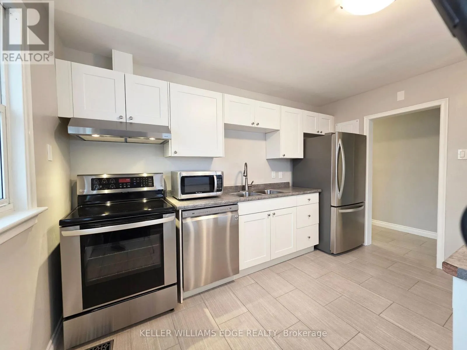 Cross Streets: Bruce St and Edinburgh Rd. ** Directions: Hwy 401 to Hwy 8. Bruce St to Edinburgh Rd. ROSEMOUNT NEIGHBOURHOOD - Bright and spacious, this carpet free 2 bedroom, 1 bathroom upper level apartment is located in the quiet, family friendly community of Rosemount. The open concept living and dining area offers plenty of room to relax or create a dedicated home office. The updated kitchen features white cabinetry, stainless steel fridge, stove and dishwasher, and a large peninsula with seating. From the kitchen, walk out to your private balcony, ideal for morning coffee or an evening drink. Down the hall are two generous bedrooms with large windows and an updated 4 piece bathroom. Shared laundry is located on the lower level. The unit includes 2 parking spaces (1 large private garage space and 1 private driveway space). Centrally located close to parks, schools, shopping, restaurants, public transit and major highway access. (id:27476)