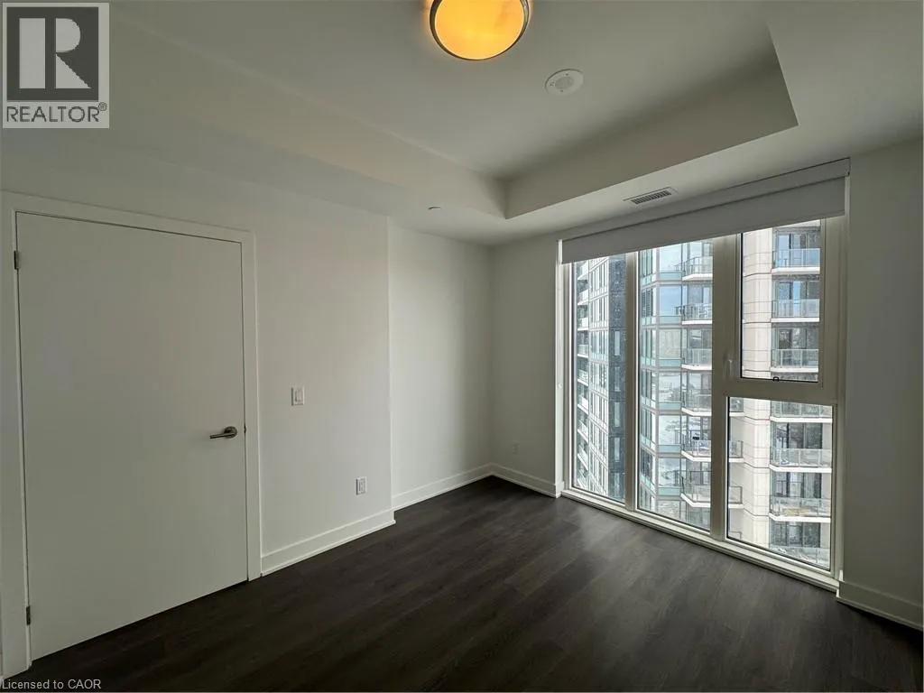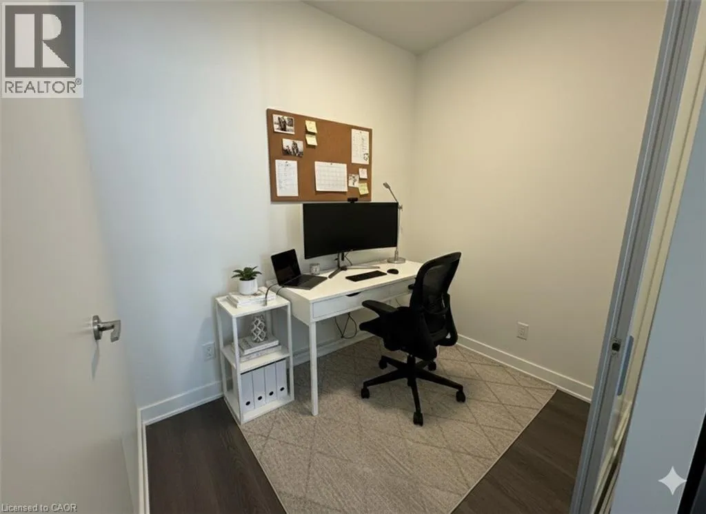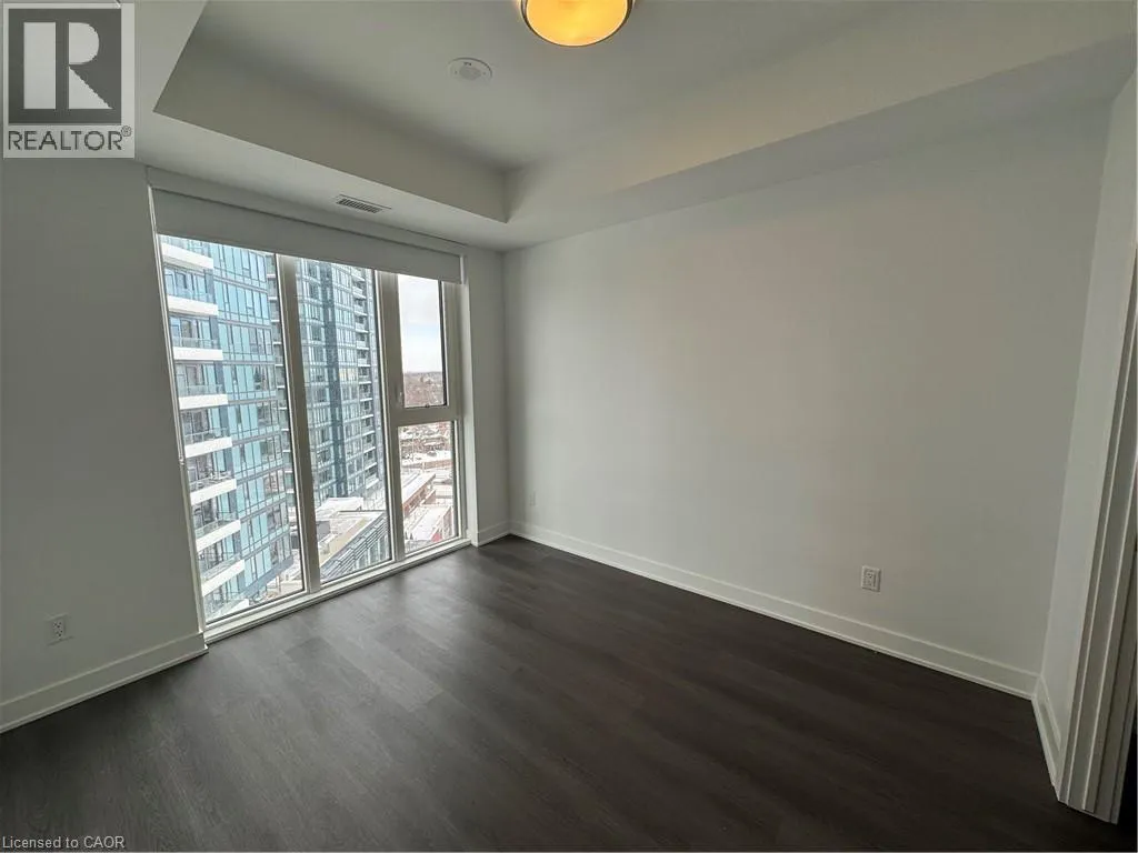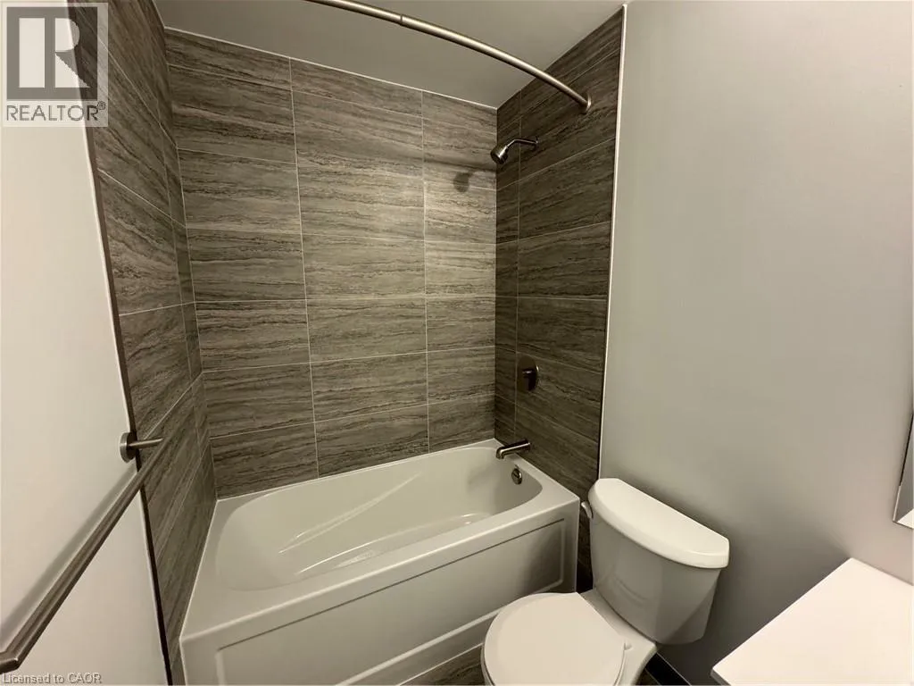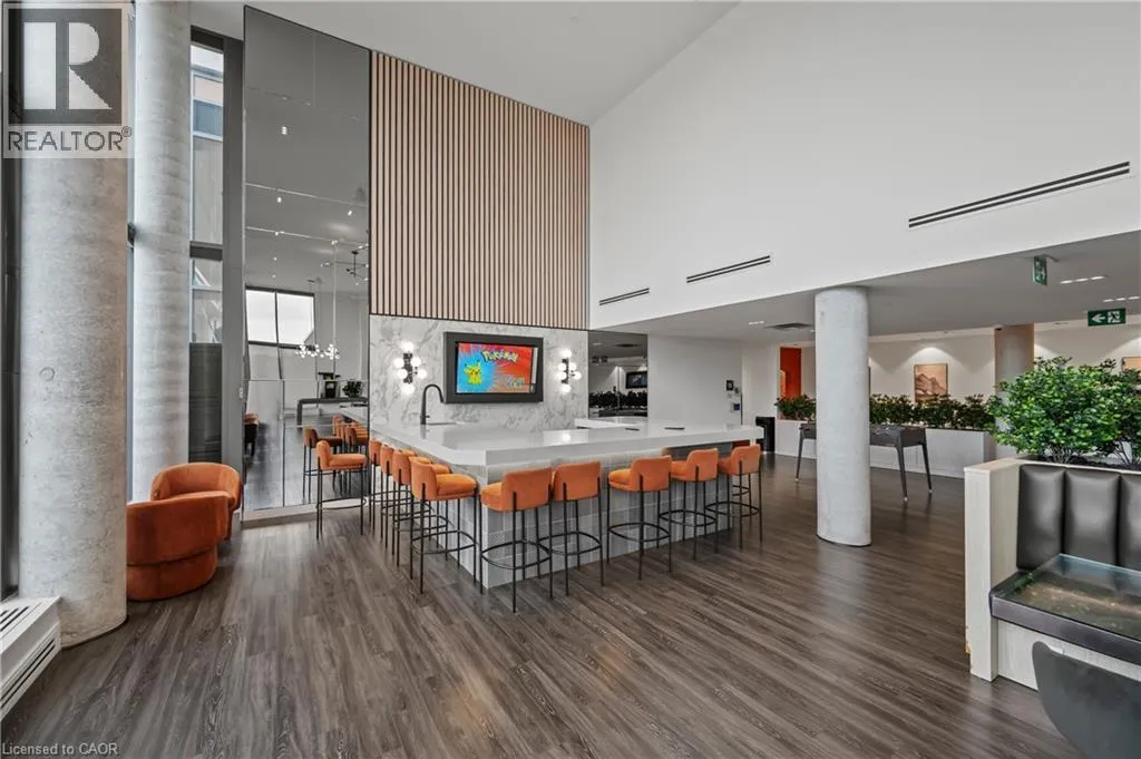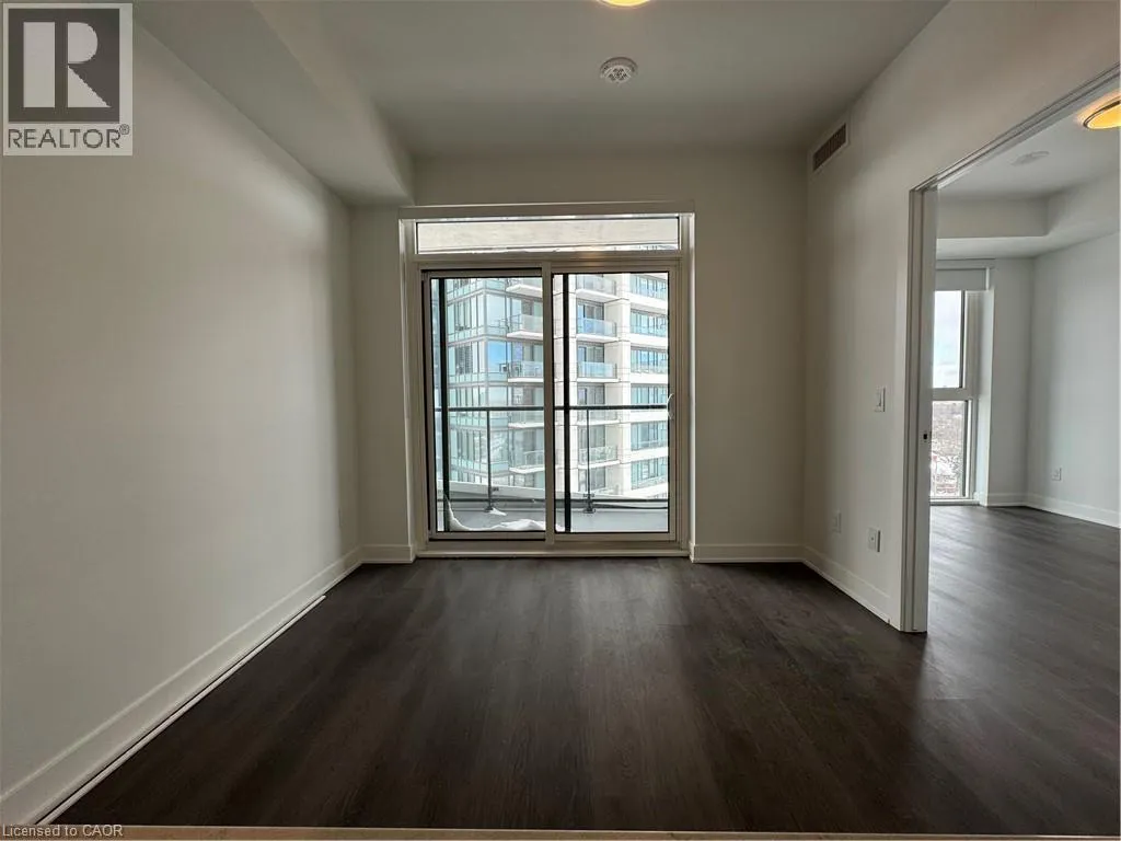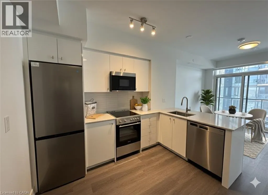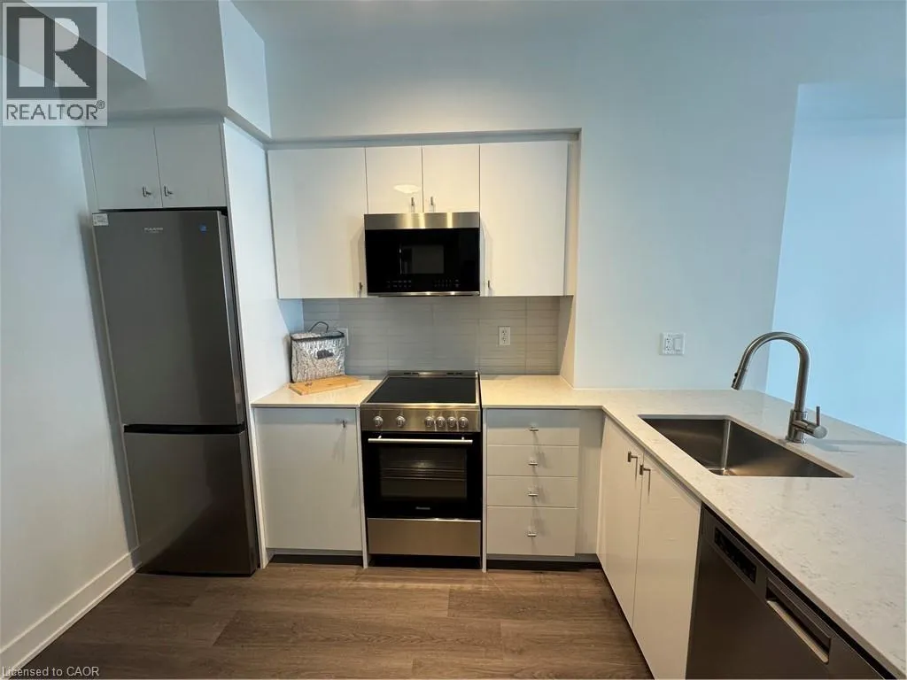 Victoria St to King St Modern 1-bedroom + den condo in Kitchenerâs Duo. Offering 723 sq ft of interior living space plus a balcony, this unit combines style and functionality. The bright, open-concept layout features floor-to-ceiling windows, a sleek kitchen with stainless steel appliances, quartz countertops, tile backsplash, and ample storage. A versatile den complements the space, while the bathroom showcases a quartz vanity and soaker tub. Enjoy in-suite laundry, underground parking, a locker, and access to luxury amenities including a fitness and wellness centre, swim spa, bowling alleys, arcade, party lounge, dog park, amphitheatre, BBQs, work pods, and cabanas. Conveniently located near Google, Grand River Hospital, LRT, GO Station, shops, restaurants, and Victoria Park. The Photos have been virtually staged. (id:27476)