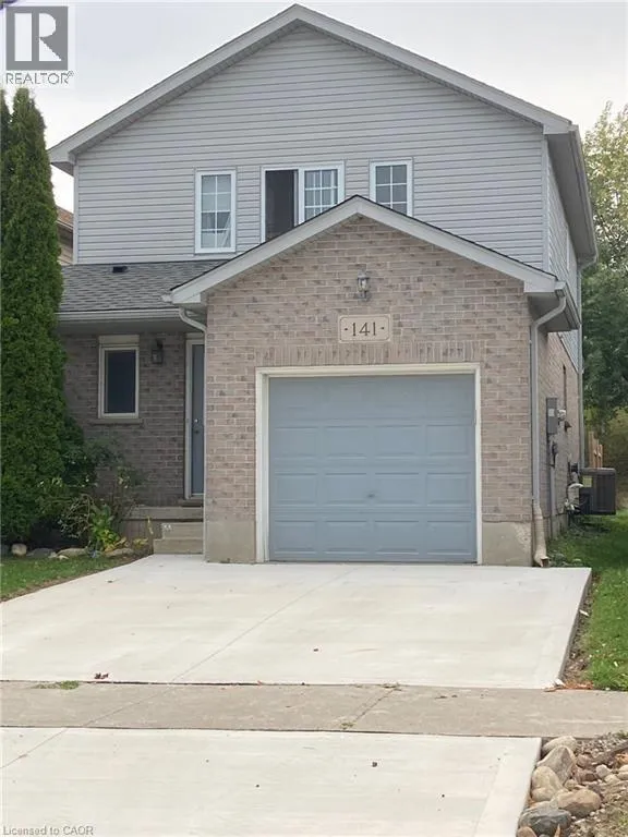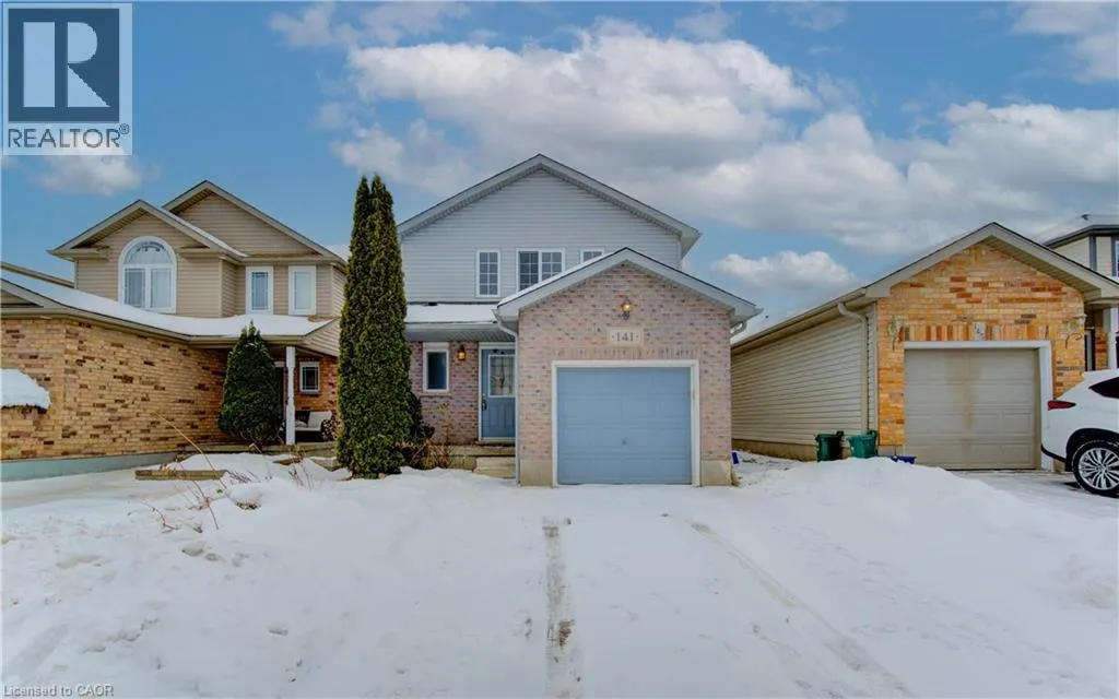 ACTIVA TO BERRY MOSS TO MOUNTAIN LAUREL CRESCENT Welcome to this well-maintained detached two-storey home located at 141 Mountain Laurel Crescent, Kitchener, offering a seamless open-concept layout ideal for modern living. The main level features hardwood flooring in the living area, a bright and functional eat-in kitchen with freshly painted cabinets, a convenient breakfast bar, and sliding doors leading to a large backyardâperfect for entertaining or family enjoyment. A separate side entrance and 2-piece powder room complete the main floor. Upstairs, youâll find three spacious bedrooms, including a generous primary bedroom with ample closet space, along with a 4-piece bathroom. The unfinished basement provides excellent potential for future living space and includes a rough-in for a 3-piece bathroom. Additional features include a partially fenced yard, attached single-car garage, and parking for two vehicles in the newly paved concrete driveway (2025). Ideally located close to the expressway, schools, shopping, and everyday amenities, this home is a fantastic opportunity for families, first-time buyers, or investors alike. (id:27476)