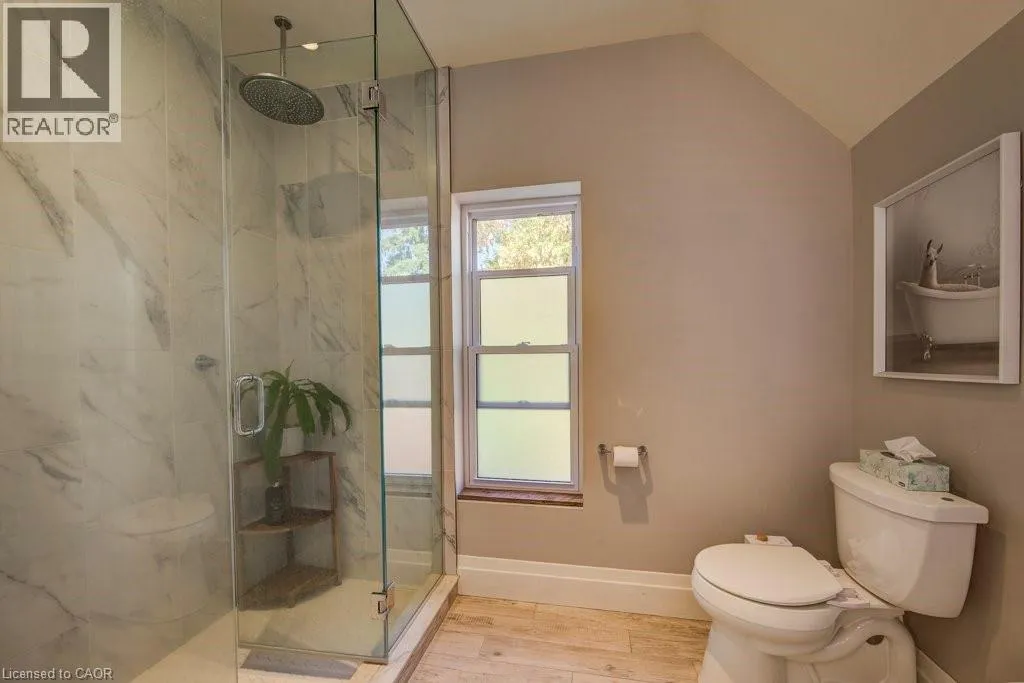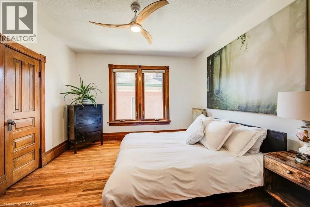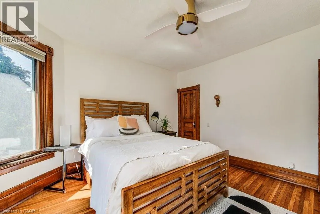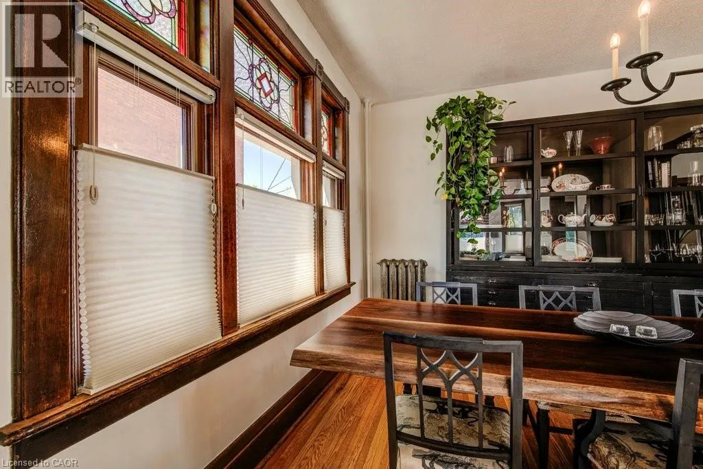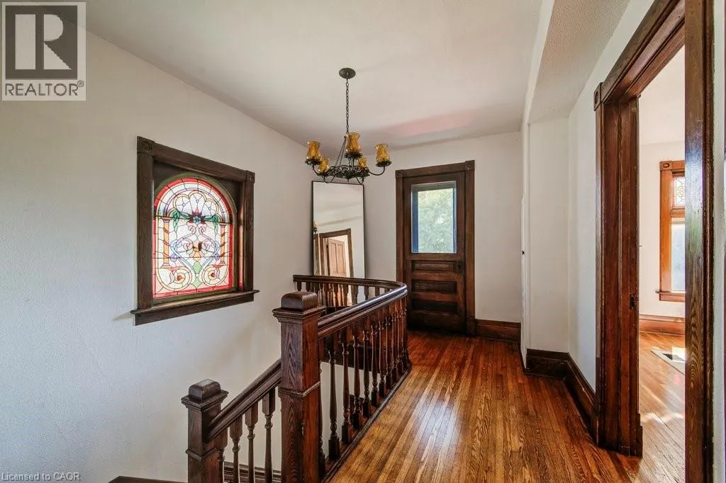 Courtland & Queen St S 350 Queen Street S is a rare & beautifully restored century home just one block from Victoria Park, steps to the heart of downtown Kitchener, blending timeless charm with modern refinement. Inside, the home's historic character shines through original doors, rich hardwood floors, intricate millwork, and exquisite stained-glass windows. The elegant living room, centered around a cozy gas fireplace, flows effortlessly into the formal dining room. Original pocket doors offer the option of privacy while preserving the home's classic appeal. The heart of the homeâthe kitchenâhas been thoughtfully updated with white granite countertops, custom cabinetry, and high-end stainless steel appliances, including a gas stove, warming drawer, trash compactor, under-counter bar fridge, and heated floors for an added touch of luxury. Upstairs, the second level features three generous bedrooms, including a peaceful primary suite with large windows and abundant natural light. The spa-inspired main bathroom includes double sinks, quartz countertops, a soaker tub, and a walk-in shower. A convenient second-floor laundry room enhances everyday functionality. The third-floor loft has been completely reimagined as a stylish and versatile in-law suite, complete with a modern kitchenette, cozy living area, a beautifully appointed bathroom with stacked subway tile and a floating wood vanity, and an additional bedroom offering privacy for guests or extended family. Outside, the private backyard retreat is designed for low-maintenance enjoyment, showcasing a built-in BBQ with black granite counters, a pergola, and lush, refined landscaping. A full-height basement with a separate entrance presents exciting potential for added living space, a home office, or another in-law suite. Meticulously upgraded with new windows, new boiler system, extensive exterior improvements, restored staircases, a fully renovated kitchen and loft, and a complete electrical update- this one-of-a-kind! (id:27476)