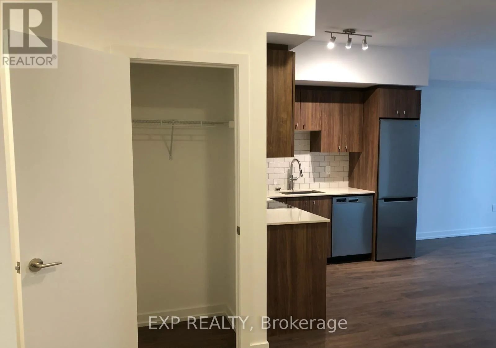 Cross Streets: King & Wellington. ** Directions: Hwy 401, Hwy 8, King Street W, Welling Street S. 5 Elite Picks! Here Are 5 Reasons To Rent This 2 Year Luxurious, Boutique-Style, One Bedroom Plus Den, One Bath, One Parking And One Locker Condo In Station Park Condominiums In Downtown Kitchener :1.Location: A Commuters Paradise, Located In The Heart Of Downtown Kitchener/ Innovation District, Steps From Kitchener Go, Google, Victoria Park, The LRT, Deloitte, KPMG's Office, University Of Waterloo School Of Pharmacy & Grand River Hospital. 2. Functional Modern Kitchen With Stainless Steel Appliances, Quartz Counter Tops, Elegant Backsplash, Lots Of Storage Space And Matching Quartz Breakfast Bar. 3. The Stunning Open Concept Layout Features 9 Feet Ceilings, Premium Laminate Flooring Throughout. Including A Walk Out Balcony And In Suite Laundry. 4. Spacious Primary Bedroom With Walk-In Closet And Huge Window. 5. No Carpet House, Nearly 705 Square Feet (Internal 655 Square Feet + External 50 Square Feet). Amenities For Your Enjoyment: It Features Unique Amenities Such As Two-Lane Bowling Alley With Lounge, Private Hydro Pool Swim Spa & Hot Tub, Fitness Area With Gym Equipment, Yoga/Pilates Studio & Peloton Studio, Dog Washing Station/Pet Spa, Snail Mail (A Smart Parcel Locker System For Secure Parcel And Food Delivery Service) & Much More. A Must See! Don't Miss This Extraordinary Opportunity To Be Part Of Kitchener's Newest & Most Vibrant Community! A Warm And Inviting Home For A Clean, Caring, Reliable And An AAA+ Tenant! Tenant Pays, Hydro, Water, Internet, Cable TV. This Unit Is Available For February 07, 2026 For Occupancy. (id:27476)