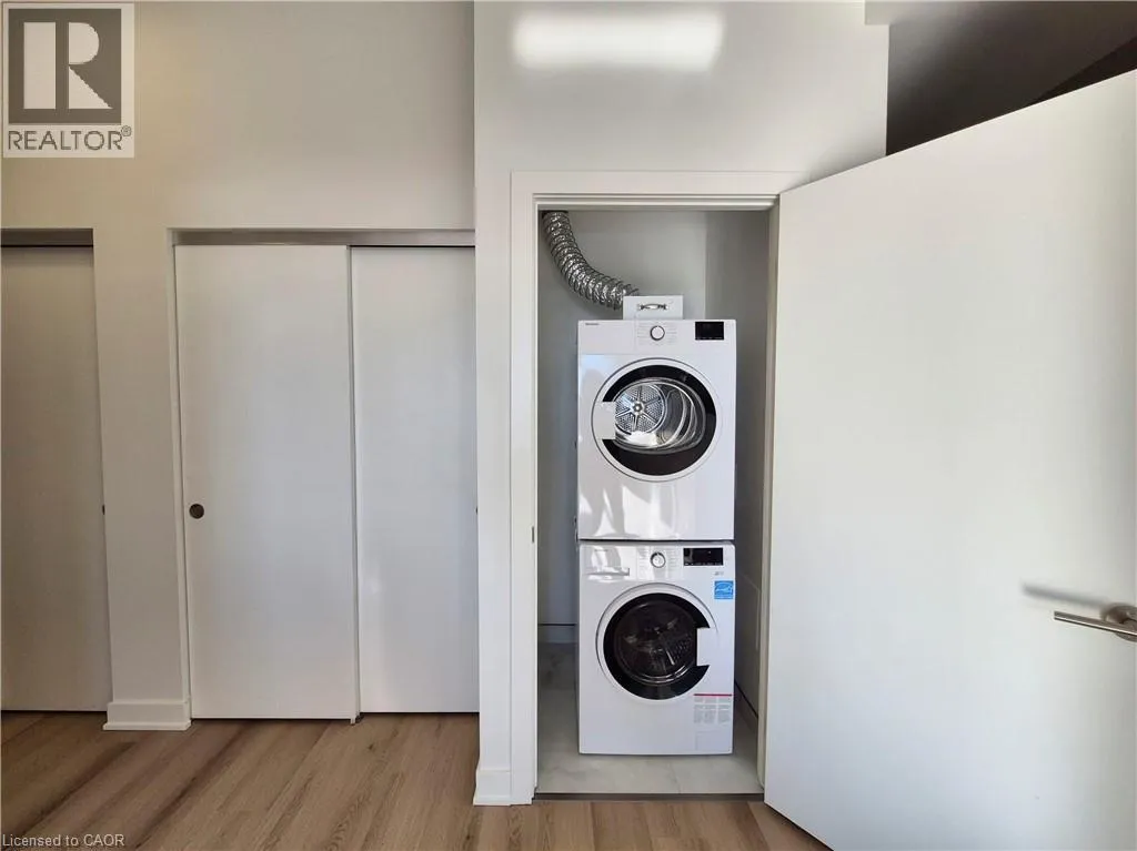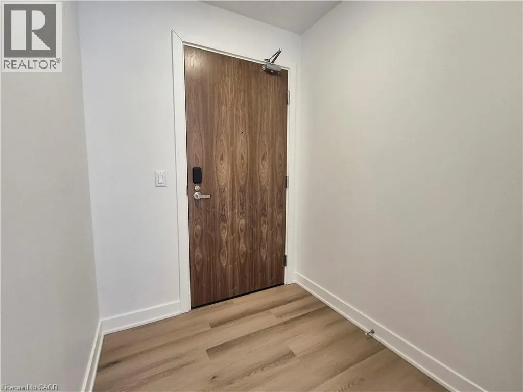 King St and Wellington St across from Google One Bedroom plus Den suite in the new Station Park Union Tower C. Spacious den ideal for home office, study, or guest room. Well designed 668 sq ft layout featuring a gourmet kitchen with stainless steel appliances, tile backsplash, high ceilings, and modern bathroom. Energy efficient heating and cooling, sleek appliances and lighting, and two sliding doors to the balcony. Smart lock entry. Bell Fibe internet included. Interior and exterior common area cameras. Resort style amenities across the three building complex include indoor lounge with bar, bowling lanes, private dining room with kitchen, fitness centre, Peloton studio, yoga and Pilates studio, swim spa and hot tub, SkyDeck outdoor gym and yoga deck, outdoor cabanas, fireplace, and gas BBQs. Additional features include parcel room, dog wash, bicycle storage, infrared sauna, rooftop terrace, and walking track. One automated underground parking space included. Prime location close to Google, Deloitte, KPMG, D2L, Communitech, McMaster School of Medicine, UW School of Pharmacy, GO Train, hospitals, Victoria Park, shops, dining, and cafés. Steps to LRT, GRT, and future transit hub. Heat and internet included. Tenant responsible for hydro and water. (id:27476)