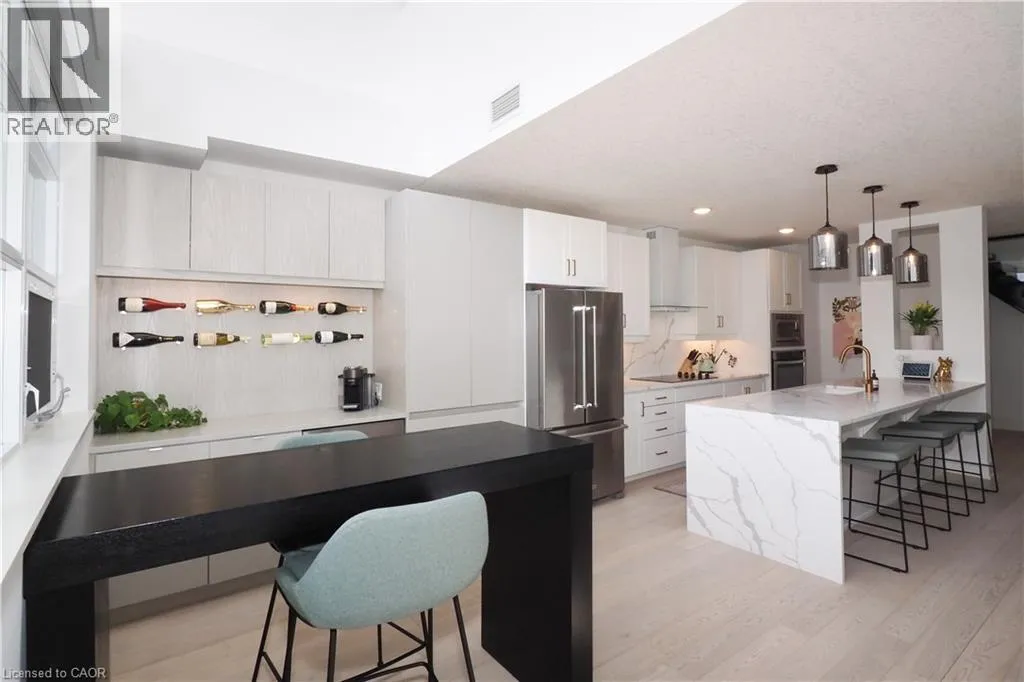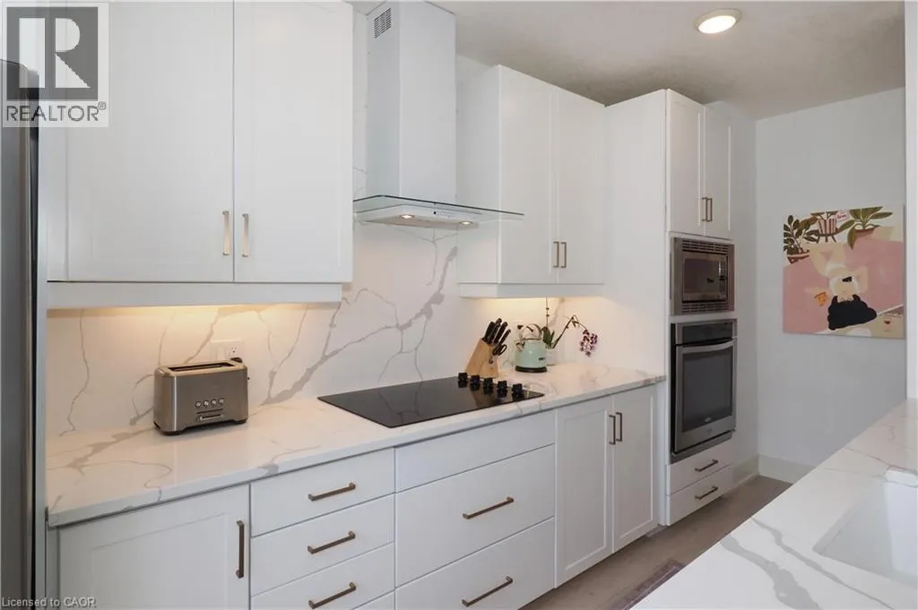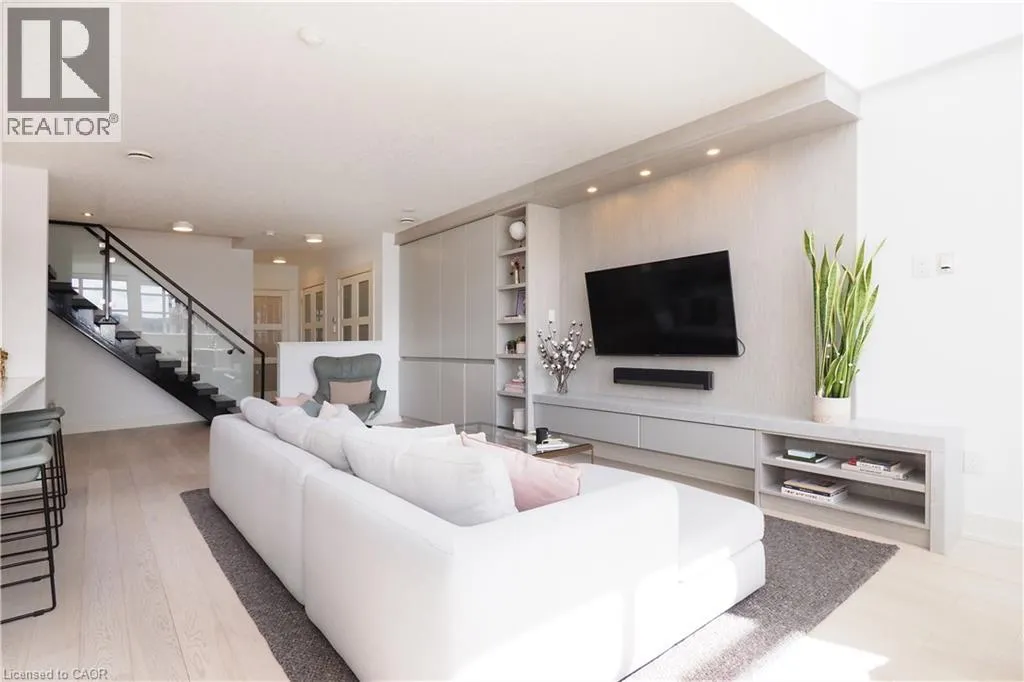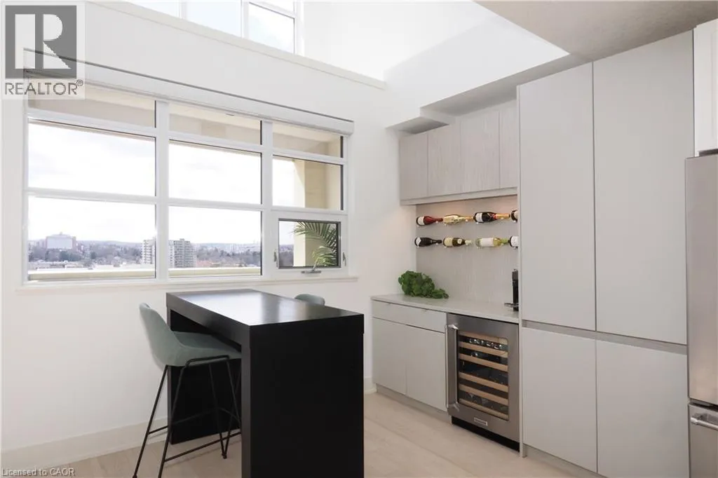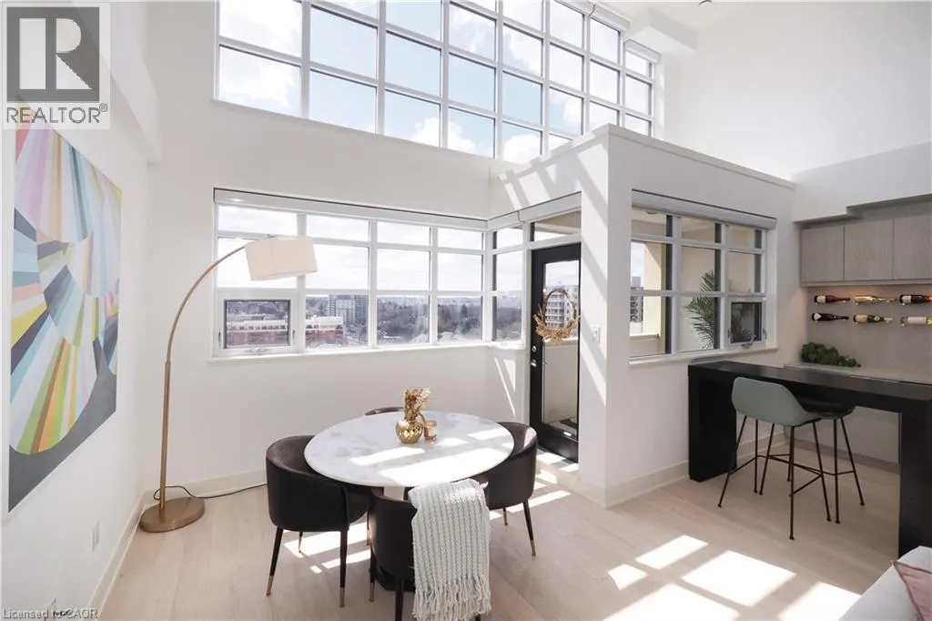 COURTLAND TO BENTON Step into luxury in this bright 2-bedroom, 2.5-bathroom suite! This southwest-facing executive penthouse features soaring two-story windows that flood the space with natural light and offer fabulous views across the city as well as an airy, fresh ambiance throughout. The main floor living space is stunningly updated with white oak floors, quartz countertops, built-in media and bar areas, and is designed for you to entertain in style or relax in an extremely comfortable and beautiful environment. Other main floor features include double closets at the front entry, a storage room or pantry space off the kitchen, and a handy 2pc main floor bath. The 2nd level hosts a spacious primary suite that includes an ensuite with a separate shower and tub, as well as a walk-through closet creating a perfect private retreat. The 2nd bedroom, full main bath, reading nook, and laundry room. Premium building amenities include a fitness centre, private theatre, party room, boardrooms, and a rooftop BBQ terrace with panoramic city views â ideal for summer evenings and gatherings. Experience penthouse living at its finest all just steps from Victoria Park, top dining spots, transit, hospitals, and the best of downtown entertainment. (id:27476)