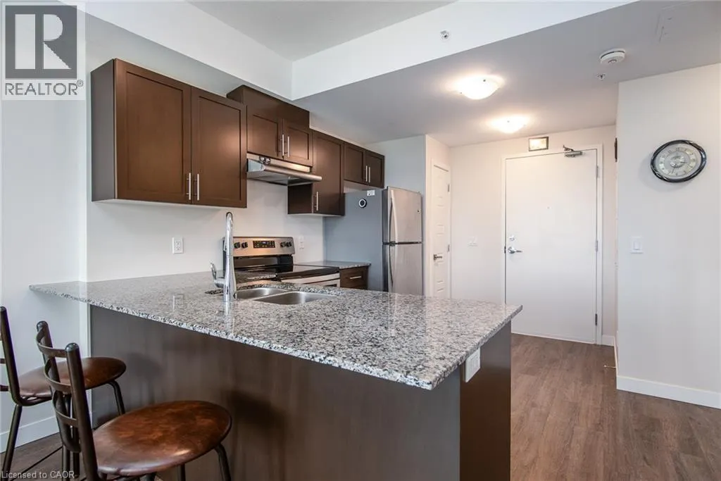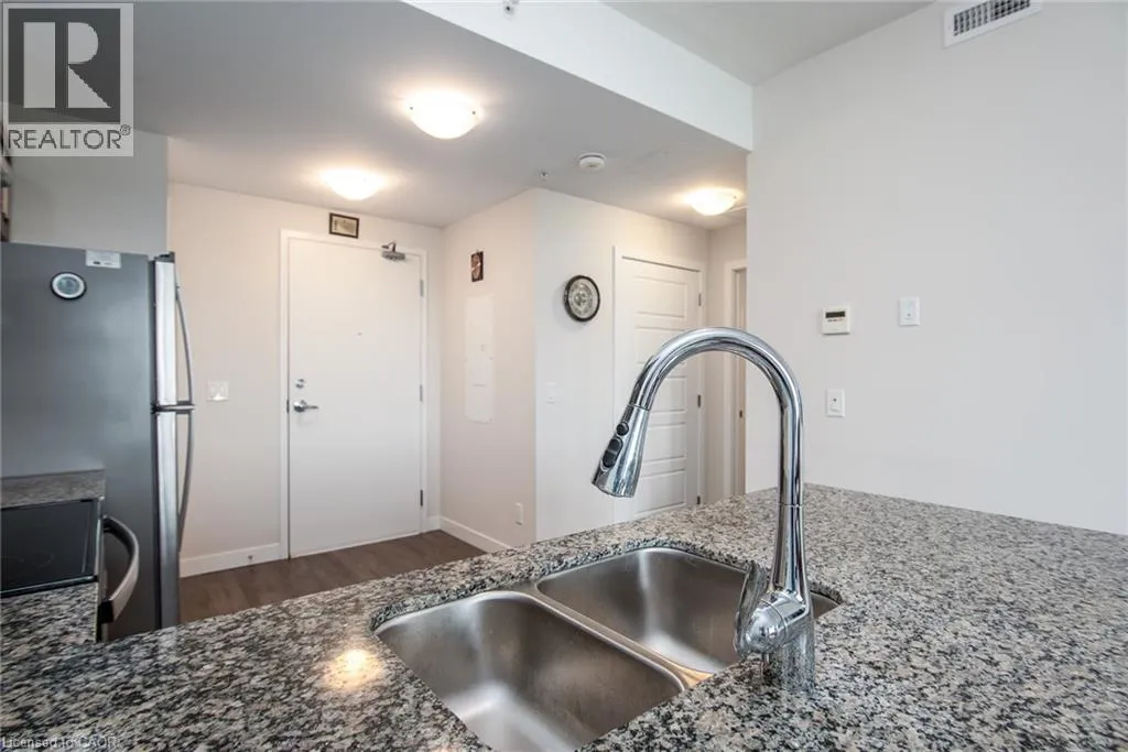 FISCHER-HALLMAN ROAD TO MAX BAKER TO COMMONWEALTH STREET. Welcome to the Williamsburg Walk neighbourhood, offering over 30 unique shops, services, and restaurants not far away from your doorstepâwhere true convenience is just a short walk away. Simplify your busy lifestyle with easy access to fitness facilities, lush green spaces, and fresh seasonal produce. This second-floor one-bedroom unit features a beautifully upgraded interior filled with natural light, 9-ft ceilings, and a warm, cozy atmosphere. The inviting open-concept kitchen is ideal for entertaining and showcases granite countertops, a four-piece stainless steel appliance package, contemporary cabinetry, and a central island. Luxury flooring and neutral décor flow throughout the unit, creating a modern and stylish living space. In addition to a full 4-piece bathroom, enjoy the convenience of in-suite laundry, plus separate owned basement storageâperfect for items you donât use every day. Step outside to the 90 sq. ft. covered balcony, offering lovely views of the park and Williamsburg Plaza. Whether you are a first-time buyer, investor, or looking to downsize, this unit is an excellent opportunity. Call your REALTOR® today to book a private showing! (id:27476)