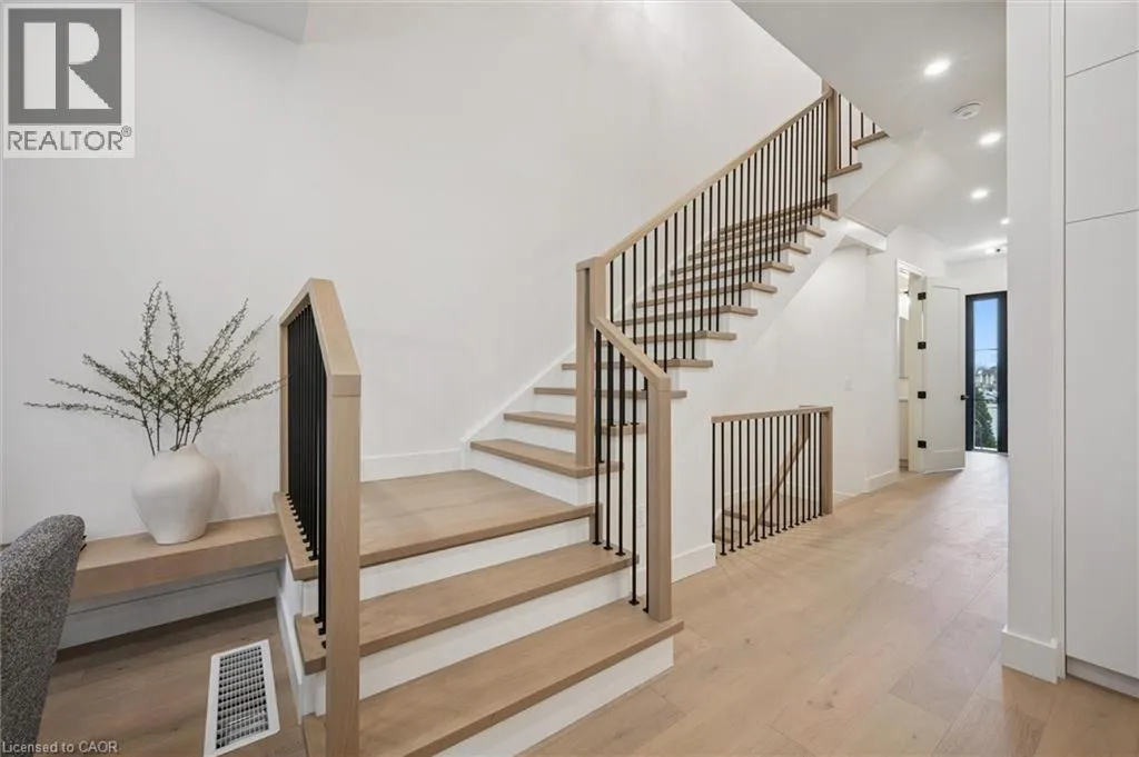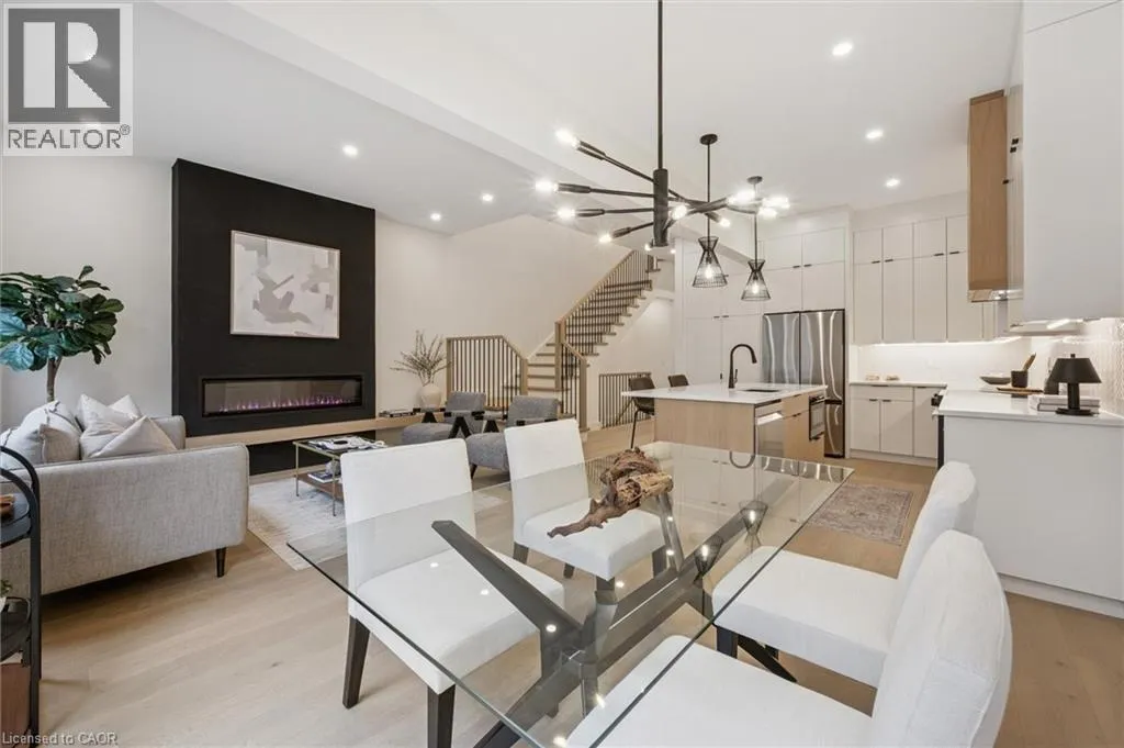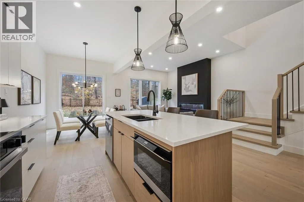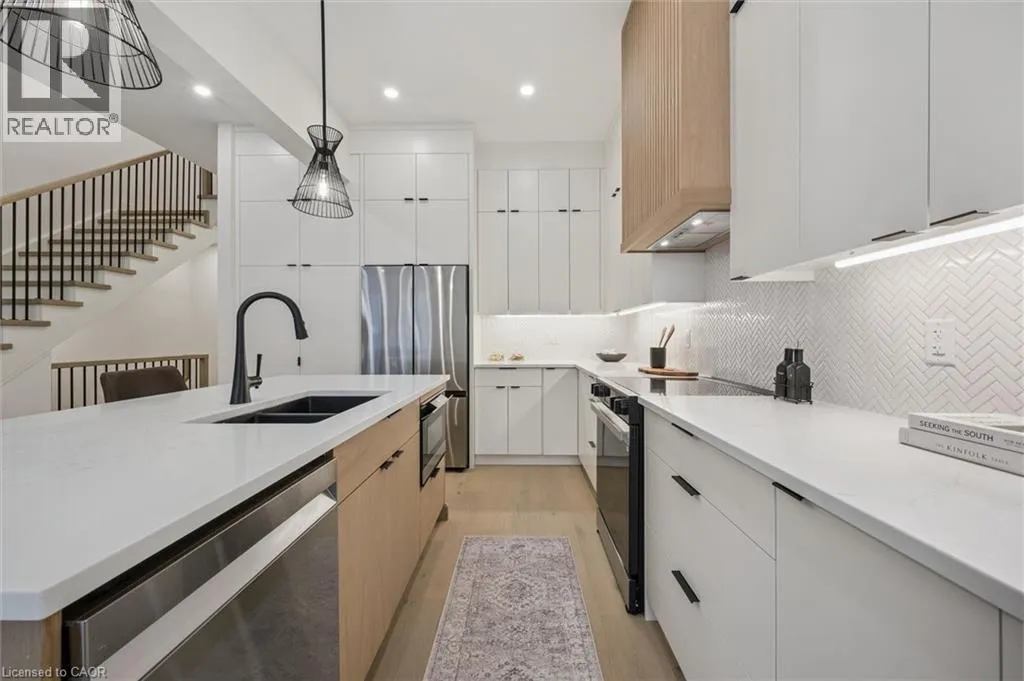 Ottawa St S to David Bergey Drive to Peach Blossom Court THE ONE that will take you by surprise - discover refined living in this beautifully appointed semi-detached home in Kitchener, showcasing over 2300 sf of elegantly designed living space. With 4 bedrooms and 4 bathrooms, this home blends modern sophistication with comfort, offering a lifestyle of both luxury and ease. The heart of this home is the gourmet kitchen, featuring custom Chervin-built cabinetry, premium fixtures, and a seamless flow into the dining and living areasâperfect for both everyday living and entertaining. Oversized windows frame serene views of private green space, bringing natural light and tranquility indoors. Upstairs, discover a spacious primary retreat with a spa-inspired ensuite featuring a double-vanity & walk-in closet Additional spacious bedrooms provide flexibility for family, guests, or a private home office, while the finished lower level offers even more living space. Step outside to your own sanctuaryâan expansive deep lot backing onto lush green space adorned with majestic maple trees. Whether enjoying morning coffee or evening gatherings, this tranquil backdrop provides year-round beauty and privacy. Ideally located near prestigious schools, vibrant shopping including the Sunrise Centre, dining, and recreation, this home seamlessly combines convenience, elegance, and natural charmâa rare offering in one of Kitchenerâs most desirable settings. Donât miss the opportunity to own this one-of-a-kind home â schedule your showing today! (id:27476)