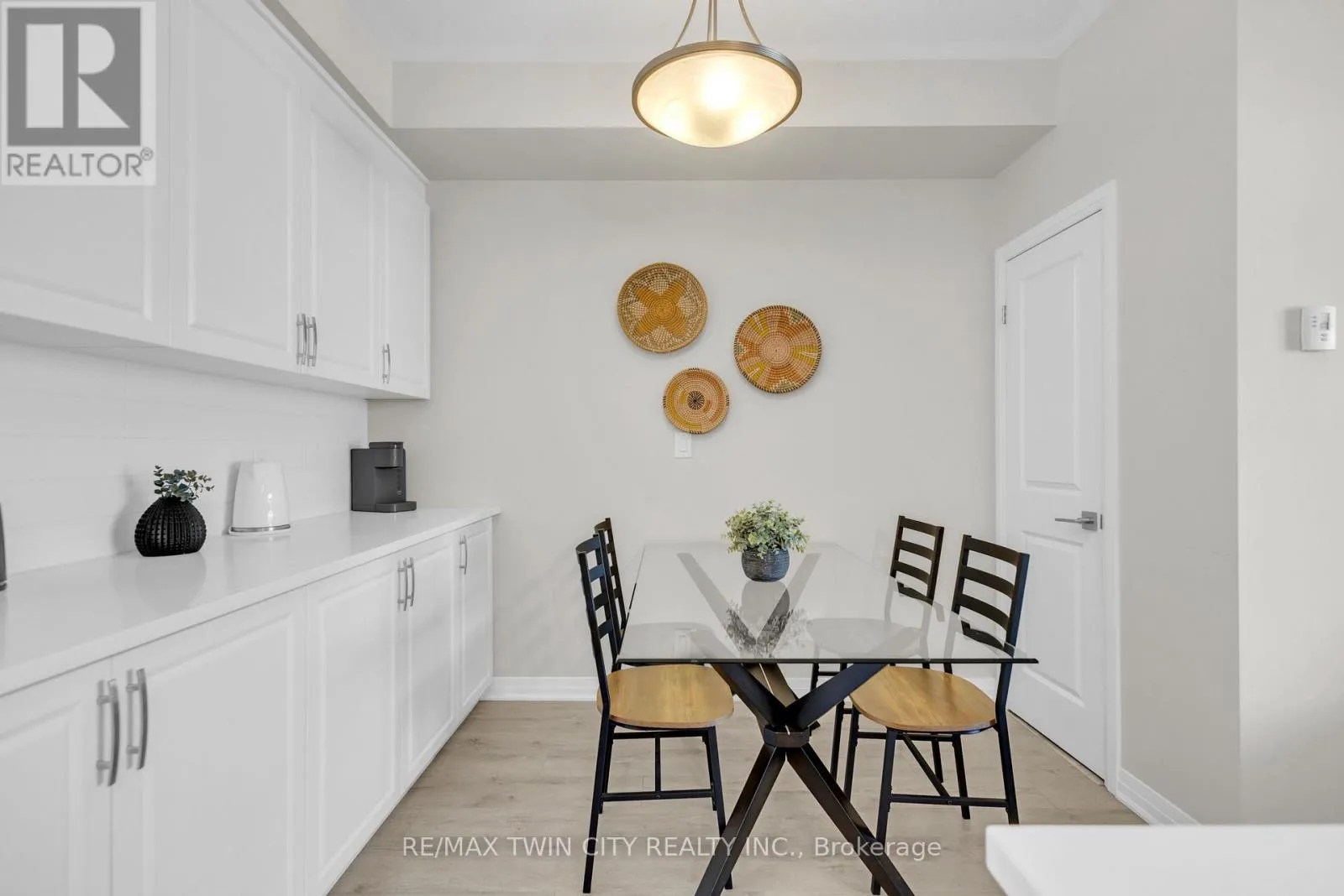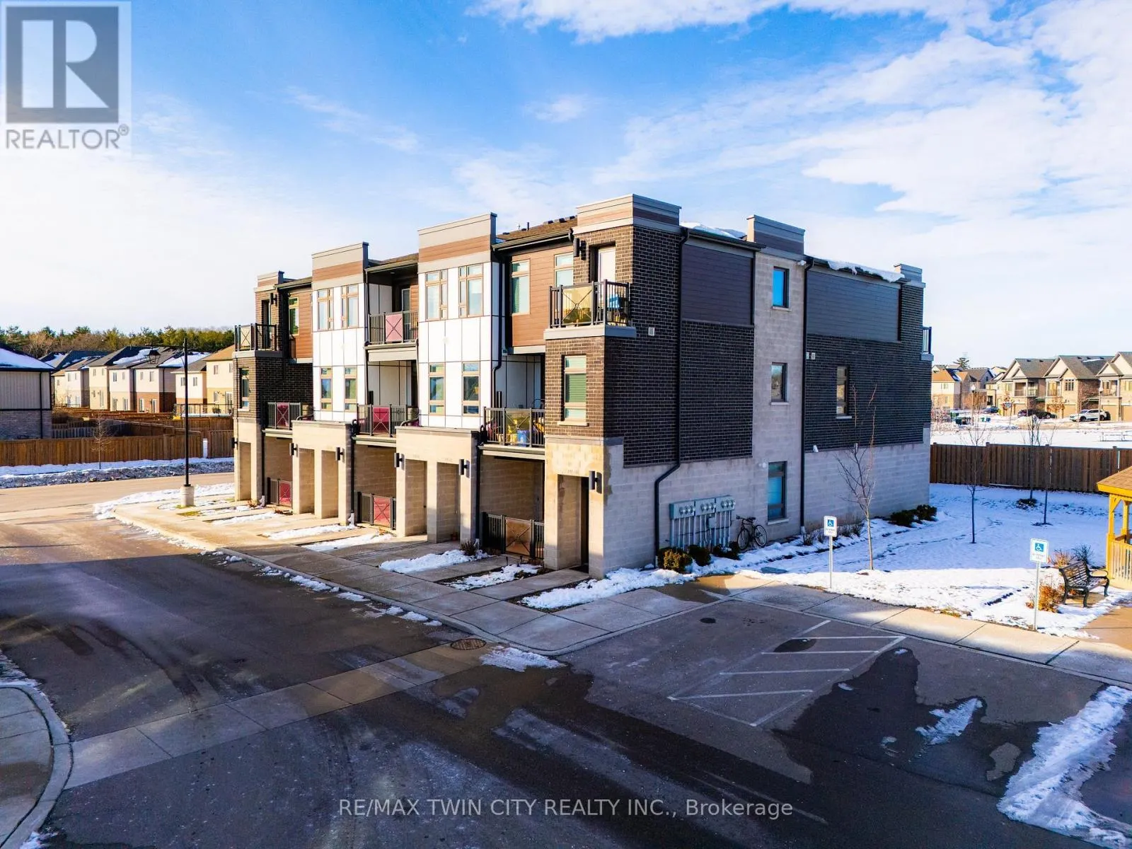 Cross Streets: Blair Creek Drive. ** Directions: Blair Creek Drive to Thomas Slee Drive. Welcome to 1F-155 Thomas Slee Drive, an exceptional and meticulously maintained stacked townhouse nestled in the heart of the highly desirable Doon Community. This modern, move-in-ready, only a few years young contemporary style home offers an outstanding opportunity for first time Home buyers or investors. Step inside and be greeted by a thoughtfully designed main level. The spacious, chef-inspired kitchen features stainless steel appliances, an abundance of cabinetry, elegant quartz countertops and a large center island that serves as the heart of the home. The bright and expansive living area, filled with natural light offers direct access to an oversized balcony. This private outdoor retreat is perfect for morning coffee, evening relaxation or simply soaking in the peaceful views. A convenient powder room completes this level. The upper level offers a well-planned layout designed for comfort and privacy. You'll find 2 generously sized bedrooms, each with its own private balcony, creating rare and inviting personal outdoor spaces. The primary bedroom is a true retreat, complete with a walk-in closet and a stylish 3-piece ensuite bathroom. A modern main bath and a conveniently located laundry room complete the upper floor. This beautiful townhouse showcases modern finishes, excellent natural light and a smart, efficient layout throughout with very low maintenance fee. Additional highlights include one assigned parking space, along with multiple first-come, first-served parking spots, offering convenience and flexibility for parking. Located in a prime Doon location, this home is just steps away from Groh Park, Groh Public School, scenic walking trails, and offers quick access to Highway 401, along with nearby restaurants, shopping and everyday amenities. Enjoy a vibrant community setting while staying connected to everything you need. An exceptional home in an unbeatable location, don't miss this opportunity. Book your private showing today! (id:27476)