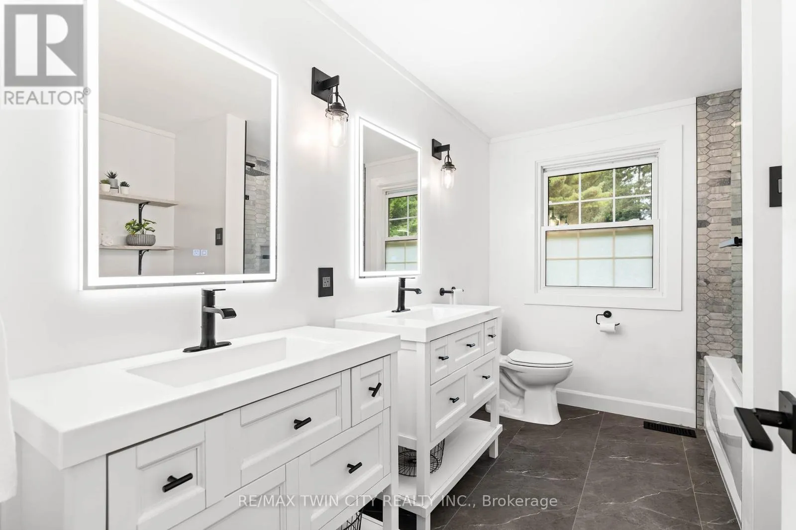 Cross Streets: Marquette Drive. ** Directions: Pioneer Tower Road to Marquette Drive to Edgehill Drive. Welcome to 296 Edgehill Drive! A beautifully updated family home on a rare, expansive .67-acre lot in desirable Pioneer Tower. Offering 3,100 sq. ft. above grade plus a finished basement, this property pairs a prime location steps from River Edge Golf Course and minutes to Highway 401 with extensive upgrades throughout - including a brand new septic system (August 2025). Check out our Top 6 Reasons this home could be the one for you:#6: PRESTIGIOUS PIONEER TOWER: Set across from River Edge Golf Course, the quiet, established neighbourhood is one of Kitchener's most sought after. You're minutes to the 401, Costco, nature trails, and Chicopee Ski Hill. #5: CURB APPEAL & LOT: An extended driveway sets the home back from the road, creating privacy right from the approach. With a double car garage with epoxy flooring, and a charming covered front porch, the curb appeal is undeniable. Out back, the huge fully-fenced yard is built for both relaxation and play featuring a deck, fire pit, play structure, & a bright sunroom that overlooks it all. Mature trees frame the space, offering shade, privacy, & plenty of room for kids or pets to run free. #4: SPACIOUS MAIN FLOOR: Inside, is a stylish foyer, elegant living and dining areas, and an updated custom mudroom with built-in storage and smart washer/dryer. A bright four-season sunroom with fireplace overlooks the backyard.#3: UPDATED KITCHEN: Completely refinished with modern cabinetry, quartz countertops, smart stainless-steel appliances, and subway tile backsplash the kitchen is as functional as it is stylish. The open flow into the dining area and sunroom makes it the true heart of the home. #2: BEDROOMS & BATHROOMS: Upstairs you'll find 4 spacious bedrooms (with potential to convert into 5) and a fully renovated 5-pc main bath. The spacious primary suite includes a renovated 3-piece ensuite with shower.#1: FINISHED BASEMENT: The basement offers a large rec room, with space for a workshop or home gym. (id:27476)