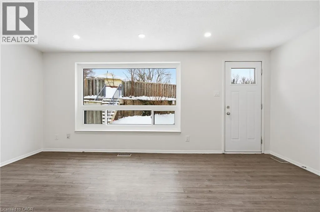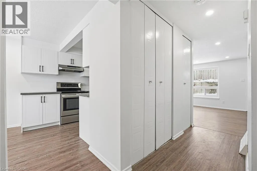FAIRWAY ROAD N / RIVER ROAD E Welcome to 280 Thaler Avenue, Unit 9, Kitchener, nestled in the highly sought-after Chicopee neighbourhood, known for its family-friendly atmosphere, excellent schools and outstanding access to amenities. This beautifully renovated 3-bedroom, 2-bathroom townhome is truly move-in ready. As you step inside, you are immediately greeted by a bright, airy main level featuring new flooring, fresh neutral paint and stylish pot lights throughout. The spacious living room is a true highlight, showcasing a large new window (installed June 2025) that floods the space with natural light, making it ideal for relaxing and entertaining. The eat-in kitchen has been thoughtfully updated that features sleek white cabinetry, quartz countertops, modern pot lighting and stainless steel appliances with new dishwasher. Heading upstairs, youâll find 3 generously sized bedrooms, each completed with new flooring and pot lights, providing a cohesive and modern look throughout. The upper level is complemented by a stylish 4-piece bathroom. The finished basement adds exceptional value and versatility to this home. It offers a cozy recreation room, perfect for a home office, playroom, media room, or guest space, along with an additional bathroom. The laundry area is conveniently located here, with appliances replaced approximately three years ago and in excellent condition. Significant upgrades including: All windows replaced, with the living room window most recently installed in June 2025 and Central air conditioning replaced in 2018. The condo fee includes full usage of water, maintenance of all exterior doors, windows and roof. Located in a well-managed complex within a family-oriented community, this home is close to Top rated schools including a Catholic school, parks, shopping, public transit and offers easy access to major highways. Whether youâre a first-time home buyer, downsizer or investor, this exceptional townhome checks all boxes. Donât miss your chance, Book your showing today! (id:27476)