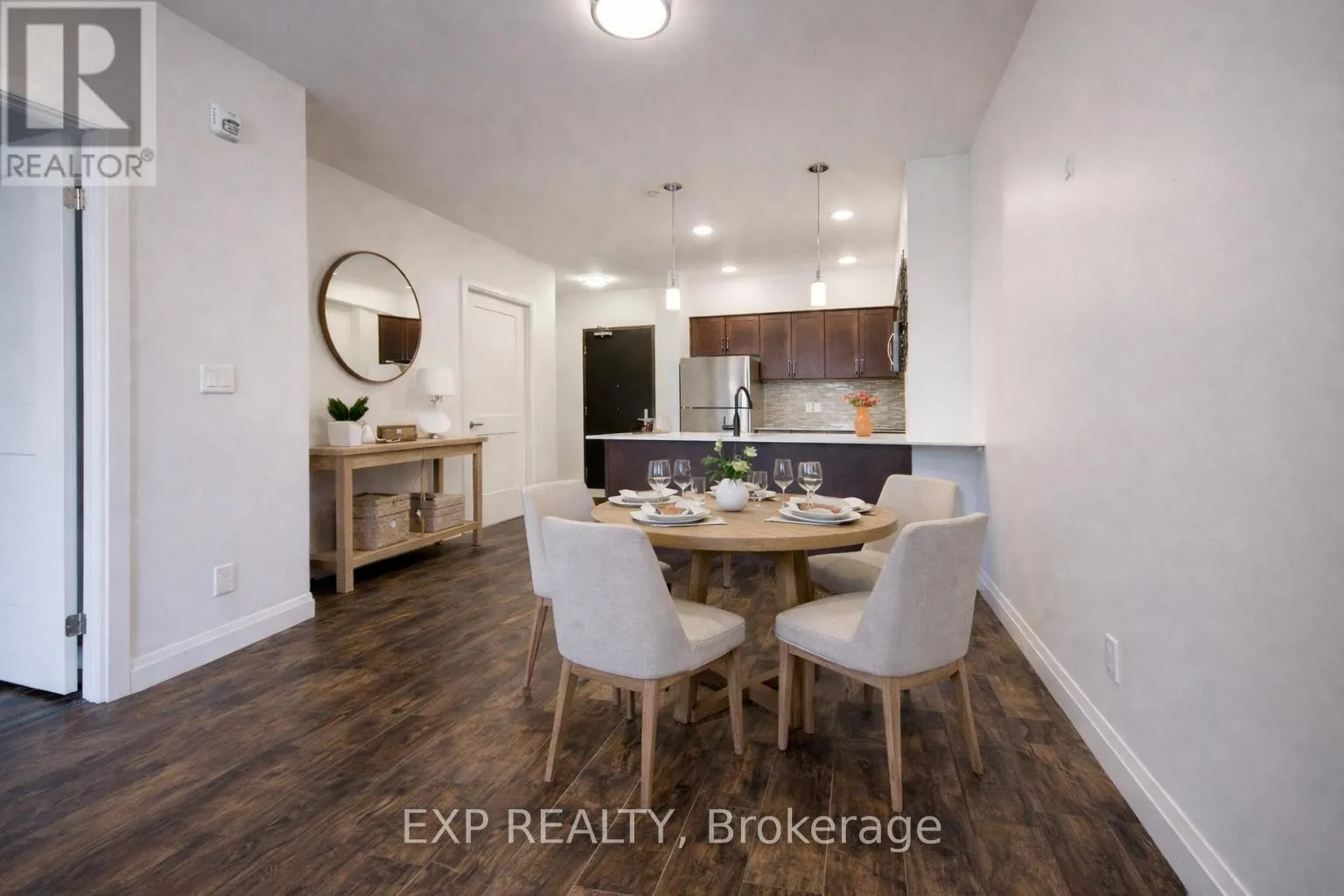 Courtland Avenue East x Queen St S Welcome to urban living at its finest in this stylish 1-bedroom, 1-bath condo on the 4th floor of Kitcheners' sought-after Barra on Queen Condos! From the moment you step inside, the custom design and thoughtful upgrades set this unit apart. The modern kitchen boasts an extended island with seating, perfect for entertaining or enjoying your morning coffee. The open-concept layout flows seamlessly to a spacious living area and out to your private balcony with plenty of room for seating, an ideal spot to relax and soak in the view. The bathroom has been beautifully updated with a sleek walk-in shower, offering a modern and functional touch. Just off the entryway, a stylish barn door leads to the in-unit laundry, full-size machines and smart design that maximize space without sacrificing convenience. With your own parking spot and thoughtful layout throughout, this condo is designed for easy, everyday living. Enjoy amenities galore right at your doorstep: a fully equipped gym, bookable party room, outdoor BBQ space, and even a pet run for your four-legged friends. And the location? Absolutely dynamic steps to Victoria Park, the LRT, trendy restaurants, nightlife, shops, public transit, and all of Downtown Kitcheners' best festivals and events. Whether you're a first-time buyer, investor, or downsizer, this condo checks all the boxes for modern city living. Don't miss your chance to call this stylish space home! (id:27476)