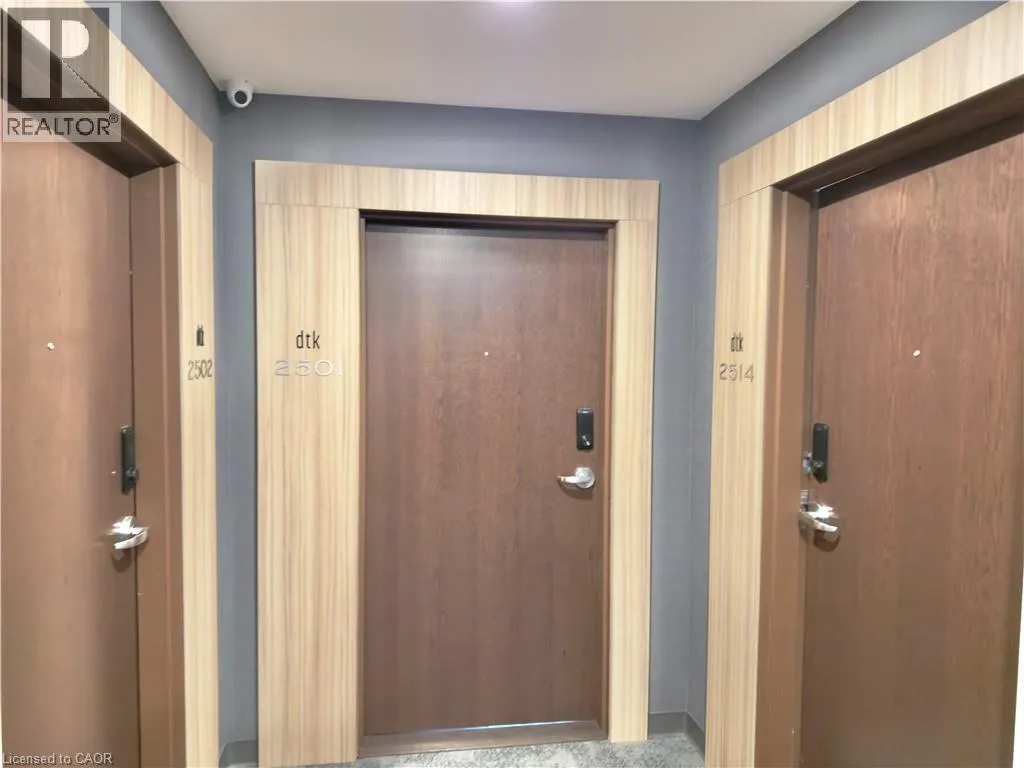 King Street East or Weber Street East to Frederick Street Discover elevated city living at Unit 2514, 60 Frederick Street, a modern 2-bedroom, 2-bathroom condominium in one of Downtown Kitchener's most recognizable high-rise buildings. Located on the 25th floor, this thoughtfully designed suite showcases sweeping views across the Waterloo Region. The unbeatable location places you within walking distance of the LRT, Conestoga College's Downtown Campus, major tech hubs, dining, and shopping. The interior blends style and functionality, featuring engineered hardwood flooring, a contemporary kitchen with clean lines, and integrated smart home features including keyless entry, smart climate control, and lighting. Two generously sized bedrooms and two full bathrooms provide flexibility for professionals, roommates, or students seeking comfort and privacy. Residents benefit from an impressive selection of building amenities such as a 24-hour concierge, fitness and yoga spaces, rooftop terrace, party and meeting rooms, bicycle storage, car-sharing services, and EV charging stations. Offering convenience, modern living, and an unbeatable downtown location, this condo is ideal for those seeking a connected urban lifestyle. (id:27476)