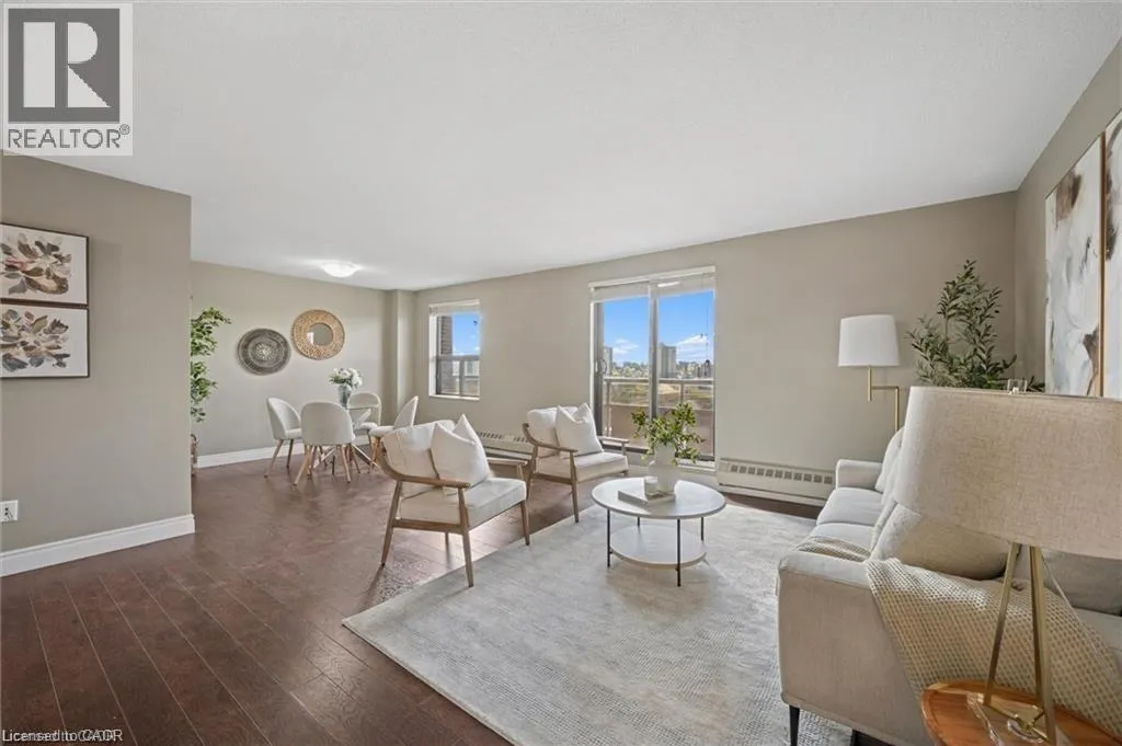 Located corner of Blockline and Courtland Remarks Public Remarks: Suite 710 at 1100 Courtland Avenue East in Courtland Terrace located on the 7th floor. Stunning sunset views from this updated 2-bedroom corner unit with abundant natural light in living room and both bedrooms. Bright, updated kitchen and spacious living area. Carpet-free, move-in-ready condo with open concept layout with newly renovated kitchen and stylishly renovated bathroom. Generously sized balcony for morning coffee or your evening relaxation. Exclusive one parking spot located front row of back entrance of the building. Condo fees include heat, hydro, water, and building maintenance. This is a pet friendly building. Building amenities include elevator access, in-ground pool, sauna, play area, fitness center, party room and laundry facilities. Central location with easy access to public transit, LRT and shopping along Fairview Road South, grocery stores, schools, parks, and highways (id:27476)
