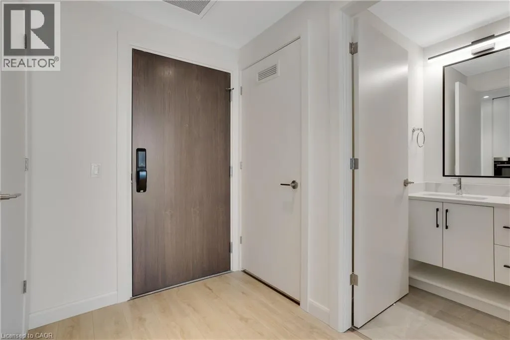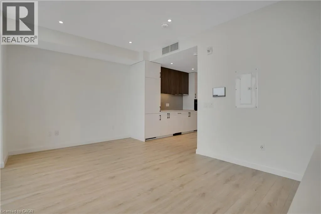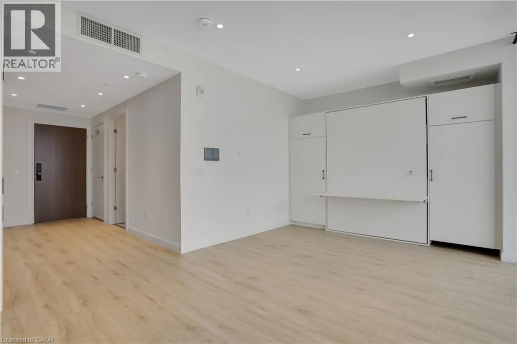 Green St to King St W This bright and spacious studio apartment offers an inviting layout with floor-to-ceiling windows that fill the space with natural light and create an open, modern atmosphere. The well-planned design includes a Murphy bed that folds away with ease, allowing you to fully enjoy the living space throughout the day. One of the standout features is the large private terrace, providing an excellent extension of the living area and a great spot to relax or enjoy the outdoors. The kitchen is both functional and stylish, featuring stainless steel appliances and ample storage, making everyday cooking a pleasure. The bathroom includes heated floors for added comfort year-round. In-suite laundry and one parking spot add everyday convenience, while residents have access to a range of building amenities that enhance the overall living experience. Located in a vibrant and central part of Kitchener, this unit is just steps from transit, shopping, dining, and all that downtown has to offer. (id:27476)