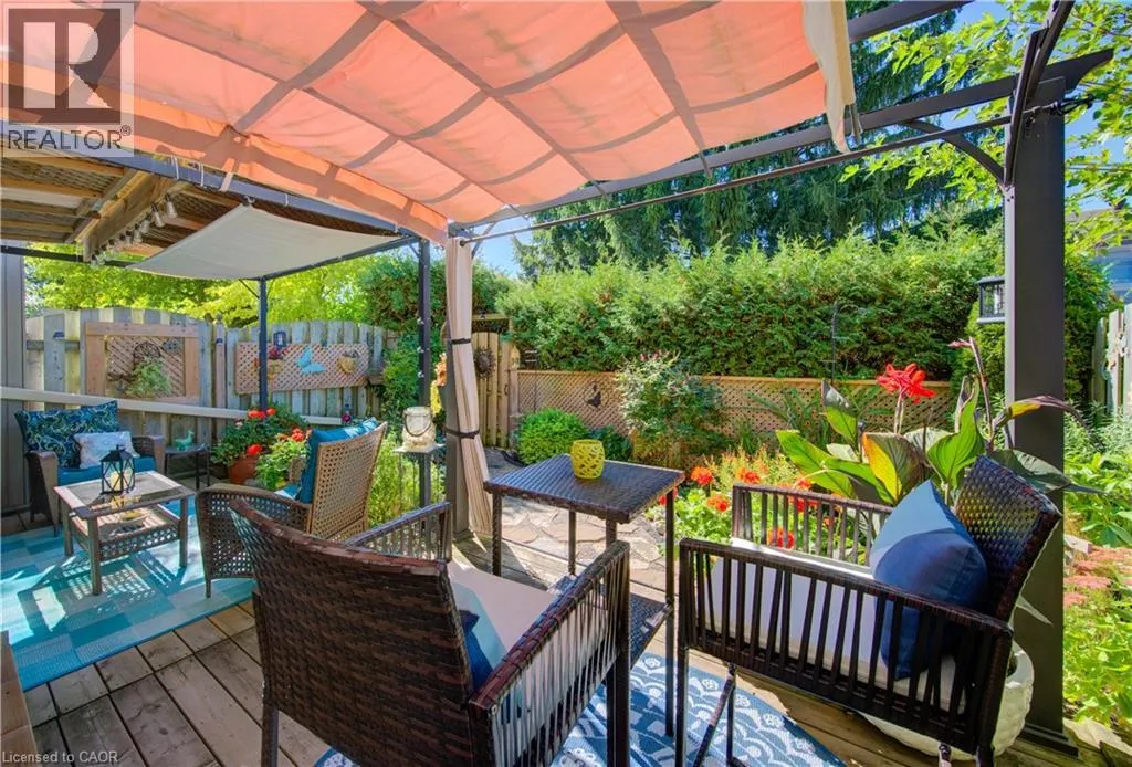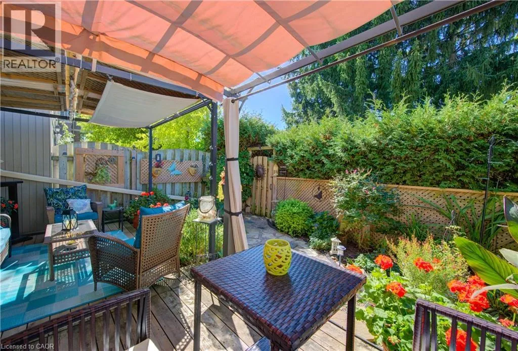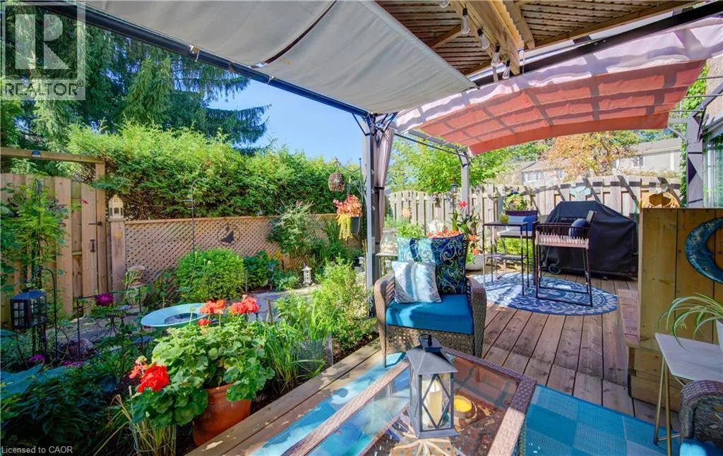 Homer Watson to Pioneer Dr to Green Valley Meticulously maintained and lovingly updated with many customized one of a kind features! Boasting over 2,000 square feet of finished living space, this 3 bedroom, 3 bathroom townhome in quiet, desirable complex is maintenance free and move in ready. The main level is bright and airy - featuring spacious, open concept living and dining rooms, a large updated, eat in kitchen with custom backsplash, movable island, pantry and s/s appliances. Upstairs you'll find 2 spacious bedrooms, a 4 pc. bathroom plus large primary suite with feature wall, charming brick archway into walk in closet and ensuite bath with oversized walk in shower! The fully finished walk out basement leads to private, fenced gardens with lovely perennials, deck, gazebos and bbq area w/ gas line for convenience. 2 parking spaces with attached garage and single driveway plus ample visitor parking. This unit is beautifully positioned with year round privacy overlooking evergreens. New Heat Pump/AC in 2023 (lowers fuel consumption). Excellent complex with heated inground pool and conveniently located close to Shopping, Conestoga College, Golf courses and easy access to 401, perfect for commuters! Pride of ownership is evident. AAA++ **CONDO FEES include ground level snow removal, roof, doors, windows, guest parking, water, driveways, fences, landscaping. (id:27476)