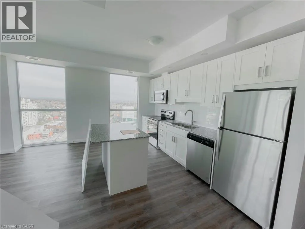 Corner of Charles Street and Gaukel Street Welcome to a spacious, sun filled corner suite in the heart of downtown Kitchener where convenience, culture, and connectivity come together. This carpet free 1 bedroom, 1 bath residence is finished with upgraded spring oak vinyl plank flooring throughout and offers a thoughtfully designed layout that feels both modern and comfortable. Nearly $18,000 in upgrades elevate the space, including a high end stainless steel appliance package and upgraded kitchen cabinetry with soft close features. Step out onto your private 66 square foot balcony and enjoy open views of the city. All utilities are included except hydro, and the unit is supported by a local, hands on landlord. One garage parking space is also included. Living here means being steps from transit and perfectly positioned to get anywhere with ease. Head to school, to work, to Waterloo, to Cambridge, or across the region with seamless access. Google Canada, D2L, Communitech, the University of Waterloo, McMaster University, and dozens of innovative start ups are all nearby in this thriving technology district. Downtown Kitchener is alive year round with festivals, concerts, markets, and cultural events right outside your door, offering an unbeatable urban lifestyle. Residents also enjoy state of the art amenities including concierge service, a fully equipped fitness facility, yoga and wellness rooms, a social lounge with catering kitchen, a landscaped fifth floor terrace known as the buildingâs premier social hub, a pet run with washing station, and a bookable guest suite. This is downtown living at its best, central, connected, and surrounded by everything that makes the city vibrant. (id:27476)