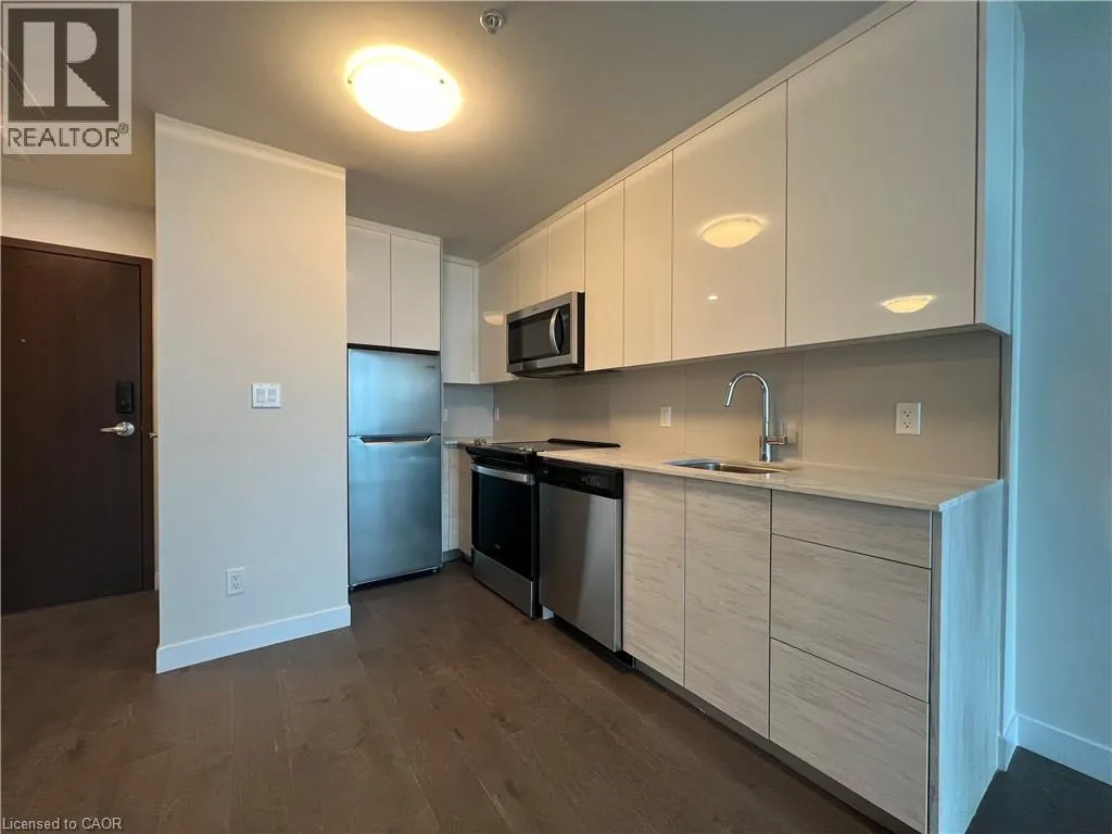 King Street East or Weber Street East to Frederick Street Welcome to DTK Condos, offering luxury living in Downtown Kitchener's tallest tower. This stunning one-bedroom plus den suite is located on the 37th floor and features breathtaking panoramic views, floor-to-ceiling windows, and a bright, open-concept, carpet-free layout. The modern kitchen is equipped with stainless steel appliances and quartz countertops, complemented by in-suite laundry and a well-appointed bathroom. The versatile den is ideal for a home office or additional living space. Heat, water, and high-speed internet are included; tenant pays hydro only. Residents enjoy smart building technology, full concierge service, and premium amenities located on the 6th floor. Unbeatable convenience with LRT and bus stops at the doorstep, a public parking lot just 200 meters away, and close proximity to Conestoga College, University of Waterloo, Wilfrid Laurier University, Victoria Park, Google, shopping, dining, and more. (id:27476)
