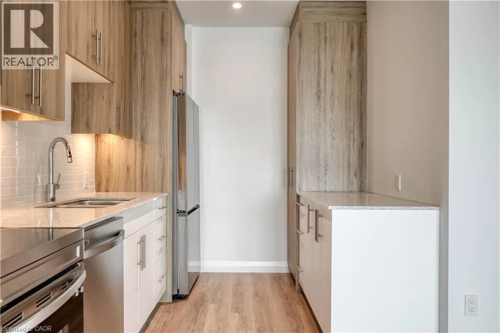 Homer Watson Blvd. to New Dundee Rd. Welcome to Rainbow Lake Retreat, a quiet and inviting place to call home. This well-designed two-bedroom, two-bathroom condo offers a thoughtful blend of comfort, style, and connection to nature. Located at 525 New Dundee Road, the suite features 912 square feet of carefully planned living space designed for easy, modern living. The open-concept layout brings the kitchen, dining, and living areas together, creating a bright and welcoming space thatâs ideal for both everyday living and entertaining. The kitchen is well equipped with ample cabinetry and stainless steel appliances, making meal prep both functional and enjoyable. Both bedrooms offer generous closet space, while the primary bedroom includes a private three-piece ensuite. Step outside to the spacious balcony, an extension of your living space and the perfect spot to unwind or customize to suit your lifestyle. The building offers an impressive range of amenities, including a fully equipped gym, yoga studio with sauna, library, social lounge, party room, and a convenient pet wash station. Set beside the private conservation area of Rainbow Lake, residents enjoy easy access to scenic trails, peaceful water views, and the outdoorsâright outside their door. This is a rare opportunity to enjoy serene surroundings, modern amenities, and a prime Kitchener location all in one place. Make Rainbow Lake Retreat your next home. (id:27476)