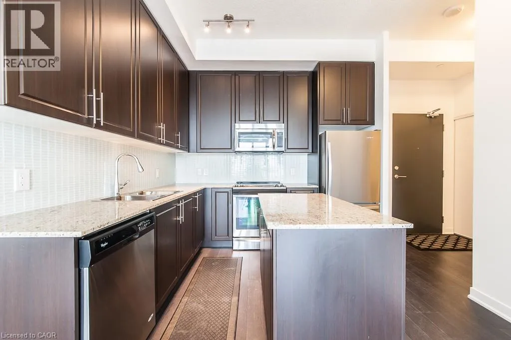 On the southwest corner of Duke St W & Young St Move-in ready, this beautiful sub-penthouse suite offers 2 bedrooms and 2 bathrooms with an impressive 10-foot ceiling, 840 sq. ft. of interior living space, and an expansive 340 sq. ft. private balcony â perfect for professionals seeking comfort and urban living. The kitchen features upgraded cabinetry and finishes, and the spacious, functional layout is complemented by spectacular city views. Located in the heart of Downtown Kitchener, everything is just steps away â restaurants, cafés, shops, Kitchener Market, parks, schools, City Hall, and public transit. Included: Water & heat. Not Included: Hydro, Tenant insurance, Cable / Internet. Building Amenities: Front-desk concierge, Furnished outdoor patio with BBQ, Party room with kitchen, Media lounge with TV, Bicycle storage. Residents of 85 Duke St also enjoy access to the amenities at 55 Duke St, including: Fully equipped gym, Swim area, Yoga studio, Rooftop running track. Rental Requirements: No pets & no smoking, Rental application, Full credit report, Last 2 monthsâ pay stubs, Government-issued photo ID, Successful applicants will be required to submit a formal Agreement to Lease. (id:27476)