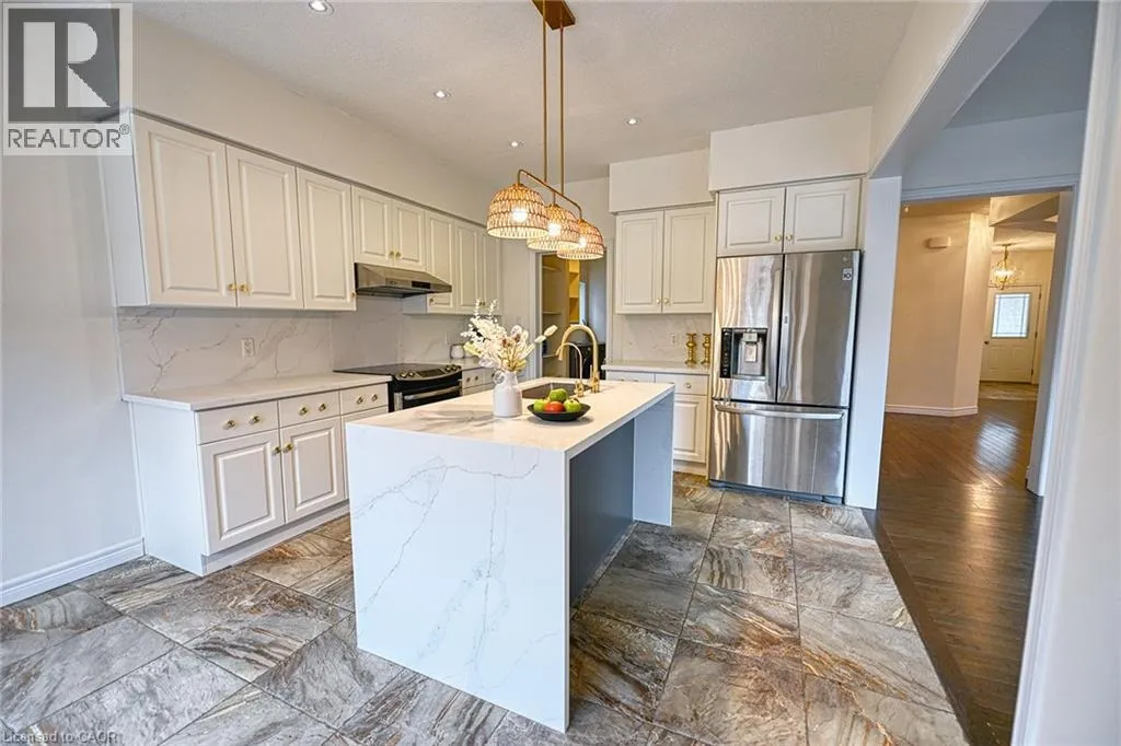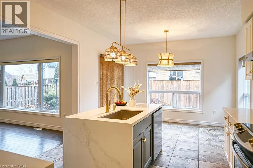 Falconridge Dr to Eaglecrest St to Coopershawk St; Falconridge Dr to Owl Ridge St to Coopershawk St. Welcome to 130 Coopershawk St. â A Stunning Executive Home in Prestigious River Ridge, Kitchener-Waterloo Discover this newly renovated and beautifully finished 5-bedroom, 4-bathroom single detached home with a double garage, available for lease in one of K-Wâs most sought-after neighborhoods â River Ridge. Offering over 3,000 sq. ft. of pristine, carpet-free living space, this home has been freshly painted from top to bottom and elegantly updated to exude modern luxury. Step into the open-concept main floor, where 9-foot ceilings and the crisp, fresh paint create an incredibly bright and airy atmosphere. The spacious foyer leads to a formal dining room featuring a tray ceiling, now illuminated by new modern lighting that adds a contemporary touch to your hosting experience. The great room is bathed in natural light, boasting oversized windows that frame serene views of the exquisite Japanese-inspired garden outside. The modernized chefâs kitchen is a true masterpiece of design. It features a sophisticated two-tone aesthetic: elegant off-white cabinetry keeps the space feeling open and radiant, while a striking dark center island provides a bold, high-end anchor. The kitchen is upgraded with exquisite new quartz countertops and a matching backsplash, highlighted by a stunning waterfall edge on the island. Adjacent to the kitchen, the sun-drenched dinette is a highlight. Featuring large windows and glass door on three sides, it offers panoramic views of the backyard oasis. This space is dressed in elegant woven blinds and coordinating door curtains that harmonize perfectly with the stylish new light fixtures, creating a warm and sophisticated atmosphere. From here, step out to the backyard, which has been transformed into Zen garden. This meticulously designed, low-maintenance sanctuary exudes a sense of peace and tranquility. Complete with a gazebo, it provides a private, Zen-like retreat perfect for quiet r A rare opportunity in a prime location. (id:27476)