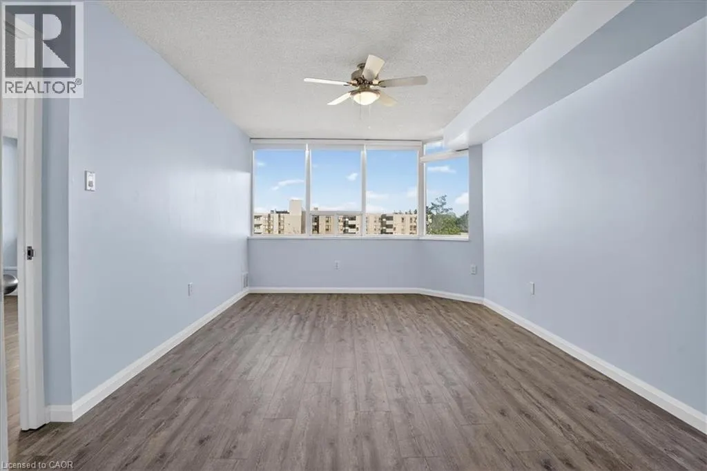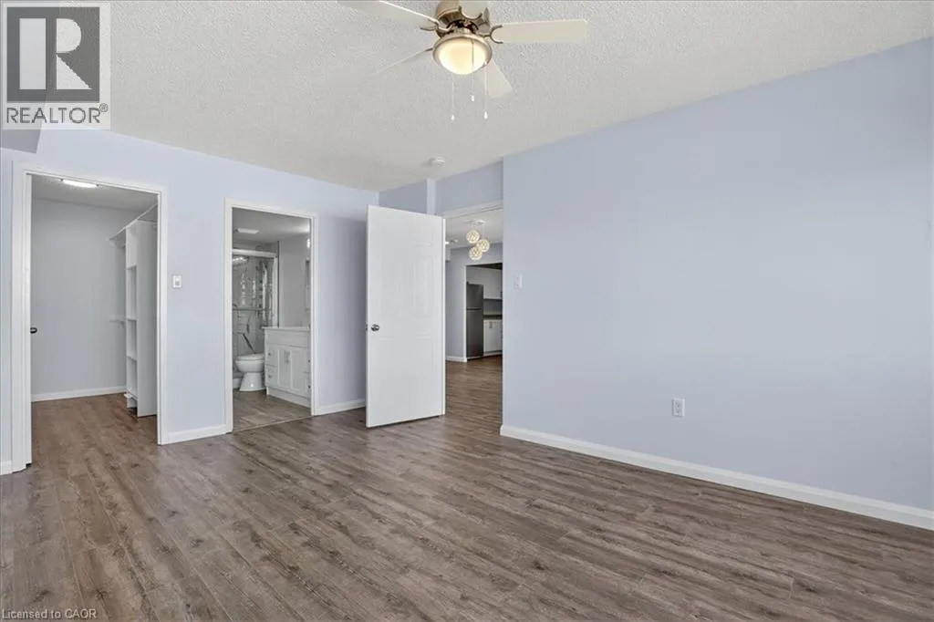 Fairway Road South to King Street East Welcome to effortless condo living in The Regency! Recently beautifully renovated 2 bedroom 2 full bath unit is the perfect home for first time home buyer or someone looking to downsize. Bright open concept Living Room & Dining Room, large Primary Bedroom with walk-in closet and 3 piece Ensuite, good sized 2nd Bedroom, 4 piece Bathroom, Storage Room. 2025 renovations include: ensuite Bath with glass shower & massage panel, 54 vanity with new sink & faucet, new toilet and LED lights, porcelain floor & shower tiles. The 2nd bathroom with new tap, 30 vanity with faucet, new dual flush toilet, LED lights, porcelain tile floor and tub surround. All new Stainless Steel kitchen appliances, soft close cabinet doors and ceiling fan. New stackable washer/dryer. New click waterproof vinyl planks in Living/Dining/2 Bedrooms and storage. New custom window vertical blinds by Levelor in Living Room. Cordless soft lift blinds in both bedrooms from Blinds To Go. Close to Chicopee Ski Hill, walking trails, Fairview Park Mall, grocery stores, Costco, restaurants, easy access to Highway 8 & 401. (id:27476)