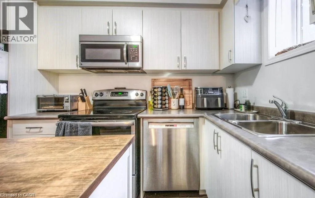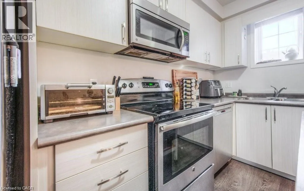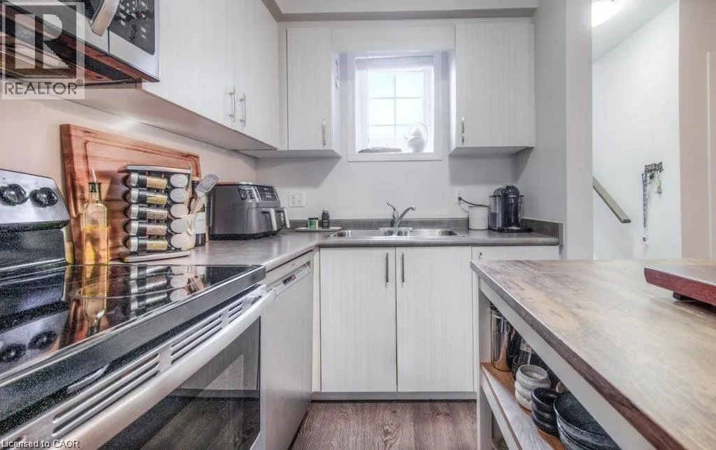 Templewood Drive to Old Huron Road Welcome to 388 Old Huron Road. This bright and well-maintained 1-bedroom, 1-bath unit offers approximately 753 sq. ft. of functional, carpet-free living space. The open-concept layout features a spacious living area and modern kitchen, enhanced by large windows that flood the space with natural light. The kitchen is equipped with stainless steel appliances, ample cabinetry, generous counter space, and a central island with seating for two, with additional room for a dining table. The spacious primary bedroom offers two large closets, a linen closet for added storage, and a generously sized window that creates a bright and inviting retreat. In-suite laundry with a full-size washer and dryer adds everyday convenience, while a crawl space discreetly tucked within the front closet provides valuable additional storage. Enjoy your own private, fully fenced outdoor terraceâan ideal extension of the living space and perfect for BBQs, entertaining, or relaxing evenings outdoors. The unit includes one owned parking space conveniently located directly in front, along with visitor parking within the complex. Ideally located in a growing Kitchener neighbourhood, just steps from playgrounds, sports fields, pickle ball courts, Strasburg Creek Natural Area, and scenic walking trails. A brand-new indoor recreation complex currently under construction nearby will soon feature swimming pools, a turf field house, and fitness facilities. The area continues to expand with new shopping and dining options, and offers easy access to Conestoga College, schools, public transit, the expressway, and Highway 401. (id:27476)