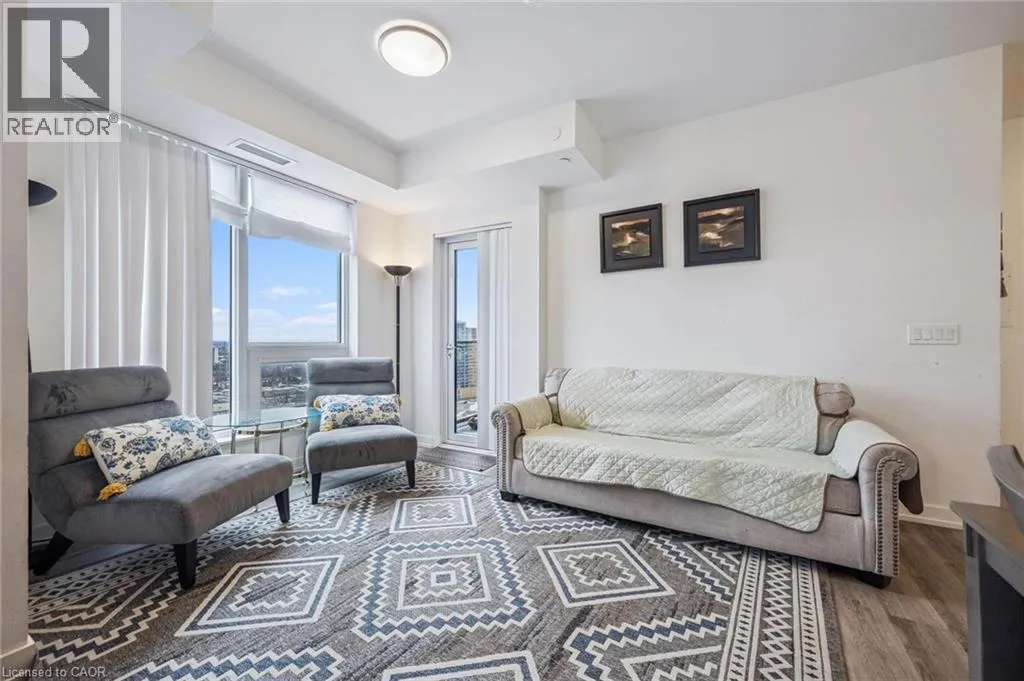 King and Wellington Welcome to Station Park, one of downtown Kitchenerâs most sought-after condominium communities. This stunning corner unit features a 2-bedroom, 2-bathroom layout with floor-to-ceiling windows offering breathtaking panoramic views of the city. Enjoy your private balcony, perfect for morning coffee or evening relaxation. Includes one parking space and a locker. Station Park offers an exceptional selection of amenities, including a luxury resident lounge with bar, bowling alley, pool table, and foosball, a hydropool swim spa and hot tub, and a state-of-the-art fitness centre with gym, yoga/pilates, and Peloton studios. Additional conveniences include a pet wash station, landscaped outdoor terrace with cabanas and BBQs, and concierge service. Ideally located steps from shopping, dining, LRT, GO Train, Google, and the Innovation District, this residence offers the perfect blend of urban convenience and modern luxury. (id:27476)