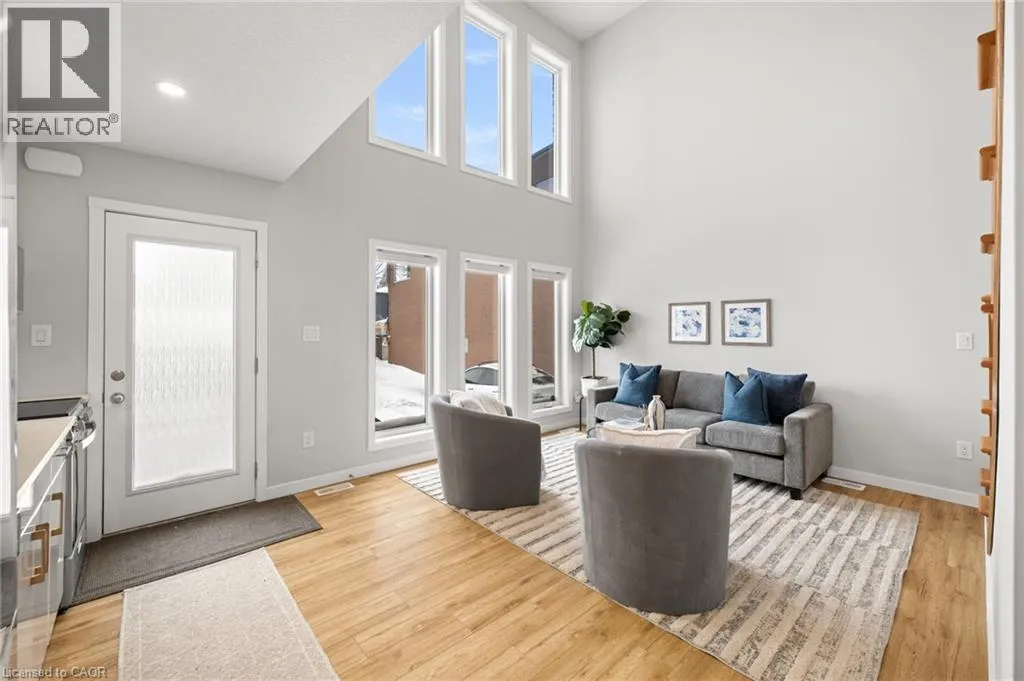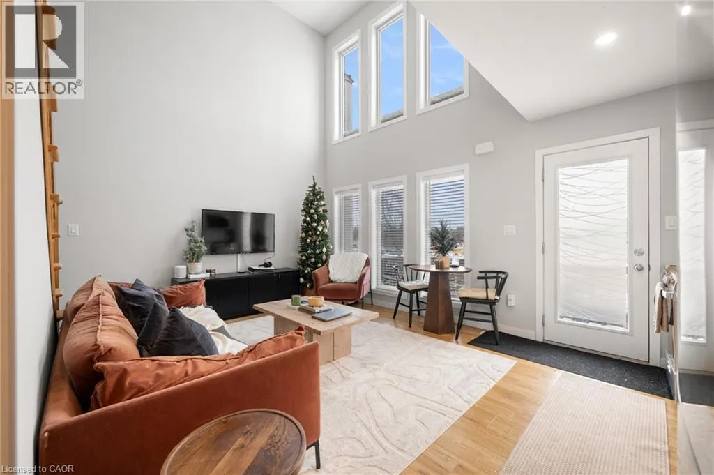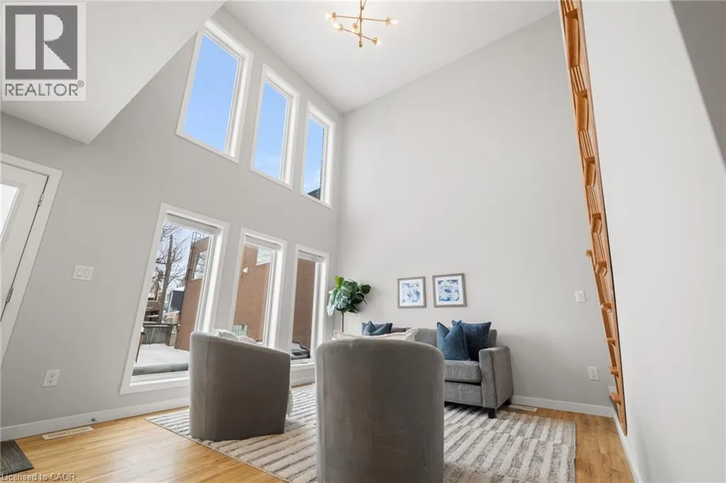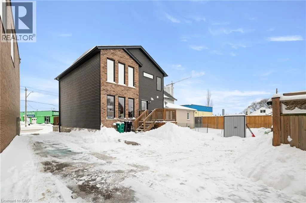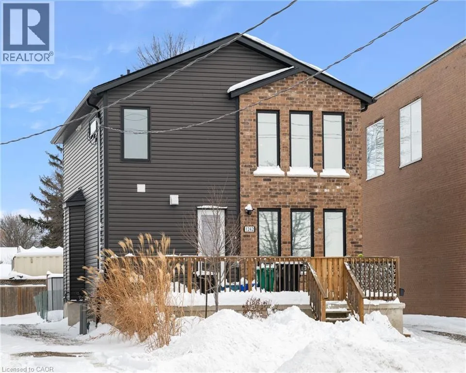 Near the intersection of Ottawa St N & King St E Welcome to 1242 King St East, Kitchener, a side-by-side legal duplex built in 2020, offering the ideal blend of modern design, strong rental appeal, and an unbeatable central location. Just minutes to DTK, steps to trails, Rockway Gardens, and with excellent commuter access via bus routes, LRT, and easy highway access, this property checks every box for investors and savvy owner-occupiers. From the curb, youâll love the contemporary exterior with modern siding and brick cladding for a polished look. Tenants will also appreciate the outdoor space, including a large front porch and rear deck areas, perfect for relaxing & BBQing. Inside, the design truly stands out. Each unit features a loft-style layout with impressive 18' ceilings, creating a bright, open feel filled with natural light. Both units are finished with designer-inspired upgrades, including white cabinetry, quartz countertops, and a sleek tile backsplash, paired with white oak-inspired waterproof laminate flooring thatâs both stylish and low-maintenance. The bathroom continues the elevated aesthetic with quartz countertops and modern black fixtures, adding a crisp, upscale finish. Each unit offers a functional 1 bedroom, 1 bathroom layout with intuitive design. Additional highlights include mirrored privacy film for excellent natural light while maintaining privacy, plus a dual-zone thermostat allowing each unit to control their own temperature independently. The duplex also features separate hydro meters, meaning tenants pay their own electricity, simplifying management. Both units include unfinished basements with excellent ceiling height, offering a potential of over 2000 sqft of total living space. Parking is another major bonus, with two parking spaces per unit, providing plenty of room for both households and visiting guests. Whether youâre looking to live in one unit and rent the other, or add a newer-build legal duplex to your portfolio, 1242 King St. E is a standout opportunity. (id:27476)
