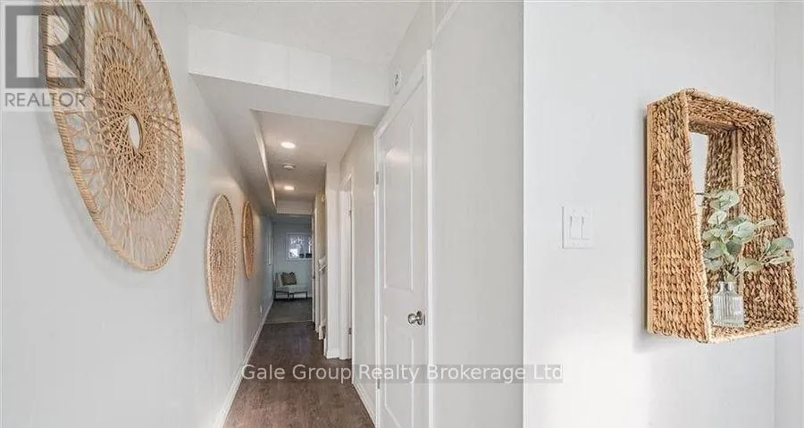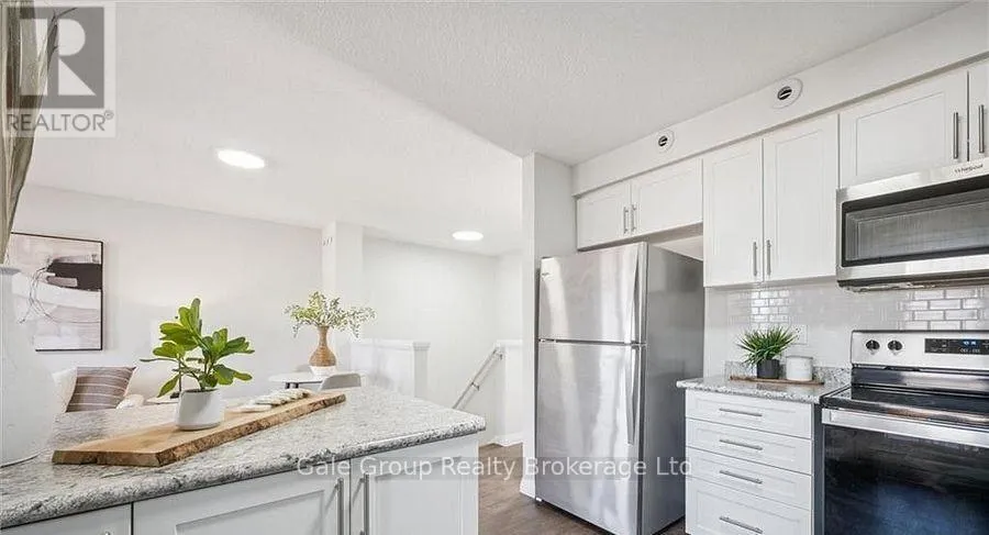 Cross Streets: King/Morrison. ** Directions: King Street East/Morrison Road. Step into this beautifully refreshed multilevel townhome, featuring exceptional versatility and modern comfort. This home features two bedrooms, two bathrooms, and a rare bonus of two parking spaces. The main floor room provides valuable flexibility and can serve as a third bedroom, home office, gym or an additional tv room, making it easy to tailor the space to your family's needs. The home has been freshly painted, new kitchen backsplash, new lighting throughout, with laminate flooring throughout for a clean, cohesive look. The bright, open kitchen opens to a terrace balcony. It also has a convenient upstairs laundry and two generously sized bedrooms. Centrally located in Kitchener, this property has quick access to Highway 8, the 401, Fairview Park Mall, Conestoga College, and everyday amenities. Move in ready and exceptionally functional, this is the perfect home young families, or anyone seeking adaptable living in a prime location. (id:27476)
