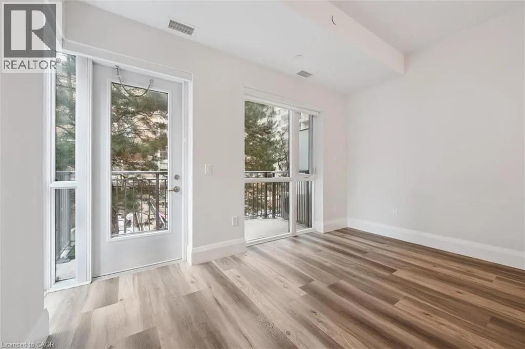 David Street and Park Street (Jubilee Drive) Steps from Victoria Park, this luxury condo offers an unbeatable downtown Kitchener location close to the LRT, Innovation District, City Hall, and the shops and restaurants of King Street. The building features secure entry, elevator access, a private balcony, home automation, and premium amenities including perimeter security cameras and a pet washing station. This spacious 1-bedroom, 1-bath suite showcases wide-plank hardwood floors, floor-to-ceiling double-glazed windows, laundry, and a glass shower. The modern kitchen is finished with stone countertops and backsplash, a breakfast island, and a Blomberg® European appliance package. Enjoy year-round access to Victoria Parkâs trails, lake, events, playgrounds, skating rink, and The Boathouse restaurantâall just outside your door. (id:27476)