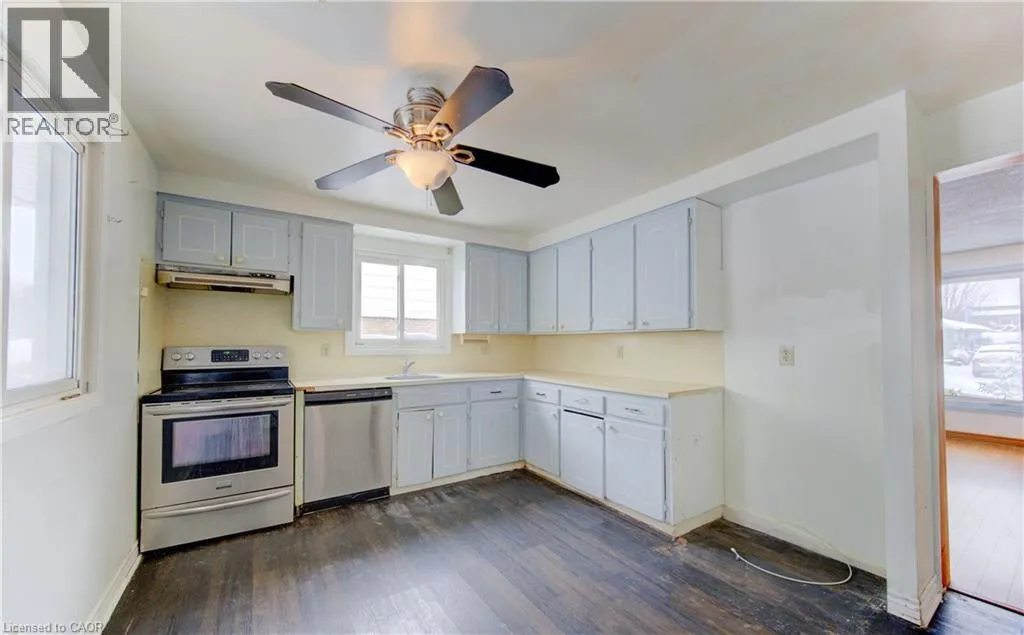 Located on a quiet crescent in the well-established Forest Heights neighbourhood, this 3 bedroom, semi-detached home offers over 1,500 sq ft of living space and is an excellent opportunity for buyers looking to bring their own vision and style to life. The main floor features a spacious, light-filled living room, framed by an expansive front window that floods the space with natural light. The bright eat-in kitchen offers generous room for everyday meals and provides direct access to the back deck, creating easy flow for outdoor dining and summer gatherings. Upstairs, youâll find 3 well sized, bright bedrooms along with a 4pc bathroom, offering a practical and comfortable layout. The partially finished basement includes a large recreation room, providing flexible additional space that can be adapted for a variety of uses. Set on a deep 150 foot lot, the backyard features a deck with pergola and a large shed, ideal for storage, gardening, or even transforming into a fun outdoor retreat. With plenty of room to play, garden, or simply enjoy the sunshine, the outdoor space is full of potential. Situated in a quiet, family-oriented area, the home is within walking distance of Forest Heights Community Centre and playground, and approximately a 15-minute walk to the Forest Heights Library, public pool, and high school. Everyday shopping and amenities are conveniently located at Highland Hills Mall, with additional options at The Boardwalk and Sunrise Shopping Centre. The neighbourhood is close to schools, parks, and trails, while public transit and major highway routes provide easy access throughout the Kitchener-Waterloo area. (id:27476)
