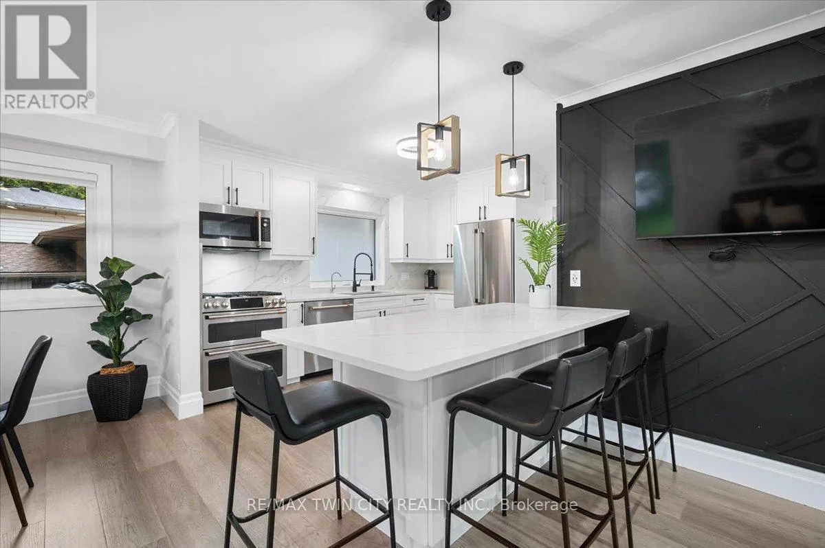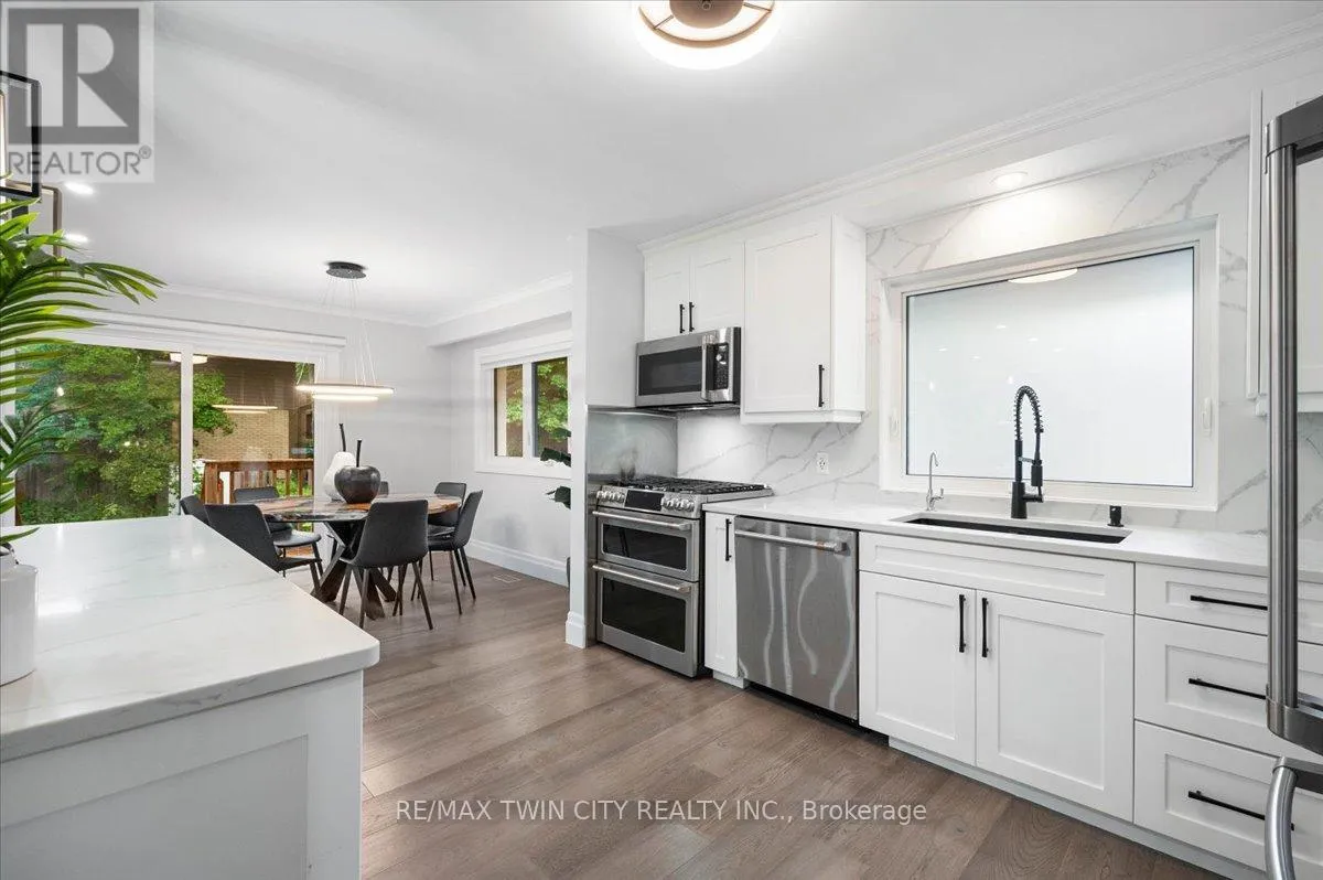 Cross Streets: Forest HIll. ** Directions: Westmount Rd to Greenbrook - corner of Greenbrook and Forest Hill. Mature and desirable Forest Hill location meets fully modernized side split on beautiful, wooded lot. 162 Greenbrook drive has undergone an addition and major renovation adding square footage to transform the primary bedroom to include an oversized walk in closet and 3 piece luxury ensuite. An elegant stucco exterior compliments the brick, enhances R value, and accents the newly replaced windows and overhanging soffits. Luxury vinyl plank and hardwood stairs span majority of the carpet free home with pot lighting and modern light fixtures distributed throughout. The elegant eat in kitchen, features floor to ceiling cabinets with a shaker door style, centre island with quartz countertops and stainless steel appliances. Entertainment space extends from this space to the oversized fully fenced yard through the sliding patio door. One level up leads to 3 bedrooms, a 5 piece main bathroom and 3 piece ensuite with heated floors, beautifully finished with designer tile, bath tub and shower niches, and glass enclosures. The ground level consists of the 4th bedroom, 3 piece bathroom, and leads to the beautifully finished epoxy floor garage. The basement level offers maximum versatility with a direct family room back door to outside access, fully finished laundry and office; giving you the ability to offer a potential separate living space. The updates are pristine and consistent throughout. Roof and windows new in 2023, gas stove, dryer, and BBQ hook up. This home checks lots of boxes, move in and enjoy! (id:27476)