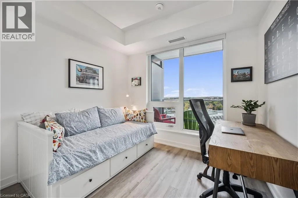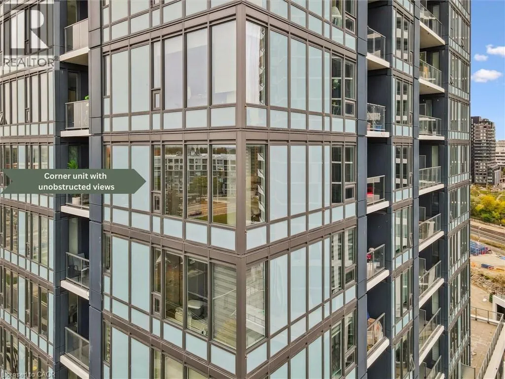 King & Wellington St S VIEWS FOR DAYS!! CORNER UNIT! Welcome to Station Park â where modern living meets unmatched convenience in the heart of downtown Kitchener. With thousands spent on upgrades, this corner 2-bedroom, 2-bath unit comes with underground parking and storage locker. Perched up on the 9th floor, enjoy spectacular sunrise and sunset views of the city overtop the trees. This spacious and well appointed unit offers an upscale bright kitchen, with upgraded island with seating, clean quartz countertops, penny shaped backsplash and ample counter and cupboard storage. The kitchen opens up to the living room that is filled with tons of natural light and unobstructed views. Make your way to the primary bedroom, fit with ceiling to floor windows all the way around and spectacular views of the neighbourhood and Uptown Waterloo. Enjoy your private ensuite with glass walk-in shower. The second bedroom is a great size - perfect for an office or for guests with another full bath. Your private balcony is the perfect place to unwind. The unit features in-suite laundry, 1 underground parking space and storage locker. Internet is included in the condo fees. Steps from Google, the School of Pharmacy and Medicine, the MedTech Hub, CommuniTech, KPMG, and countless restaurants, cafes, and shops. With the LRT and GO Train at your doorstep, the entire city and region are within easy reach. Station Park is known for offering some of the most impressive amenities in the region. From a fitness studio, hydrapool and hot tub, to a bowling alley, arcade hall, party room, outdoor workout pods, sauna, Peleton room, dog wash and future ice rink and amphitheatre - youâll never run out of ways to work, play, or unwind right at home. Don't miss the chance to experience a vibrant, connected lifestyle at Station Park - downtown living at its very best. (id:27476)
