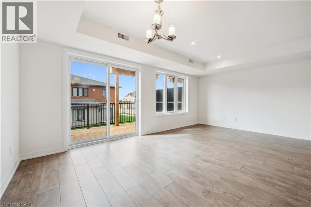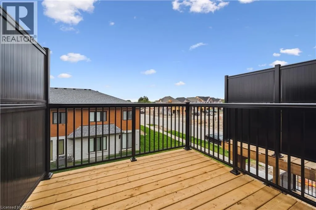 Access Stauffer Woods Tr from Blair Creek Dr or New Dundee Rd Brand new, ready now, and available for a quick closing, this gorgeous 3 bedroom, 2.5 bath condo townhouse is located in sought-after Harvest Park in Doon South. The kitchen is sure to impress with plenty of cabinetry, a large island, quartz countertops, and stainless appliances. The great room is of very generous proportions and sliders from the dining area lead to a spacious deck. On the way to the upper level, you'll love the bonus lounge that is the perfect spot for a family room or home office. Upstairs are 3 bedrooms plus a laundry room. The primary suite features a second, private balcony , a 3 piece bath and lots of closet space. A main 4 piece bath completes this level. One surface parking space. Condo fees include building and grounds maintenance as well as High Speed Internet. This is an excellent location - near Hwy 401 access, Conestoga College and beautiful walking trails. SALES CENTRE LOCATED at 158 Shaded Cr Dr in Kitchener - open Monday to Wednesday, 4-7 pm and Saturday, Sunday 1-5 pm . (id:27476)